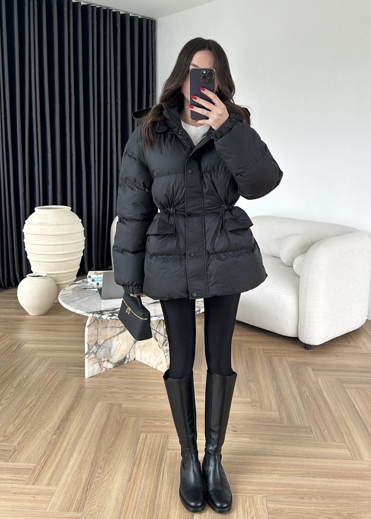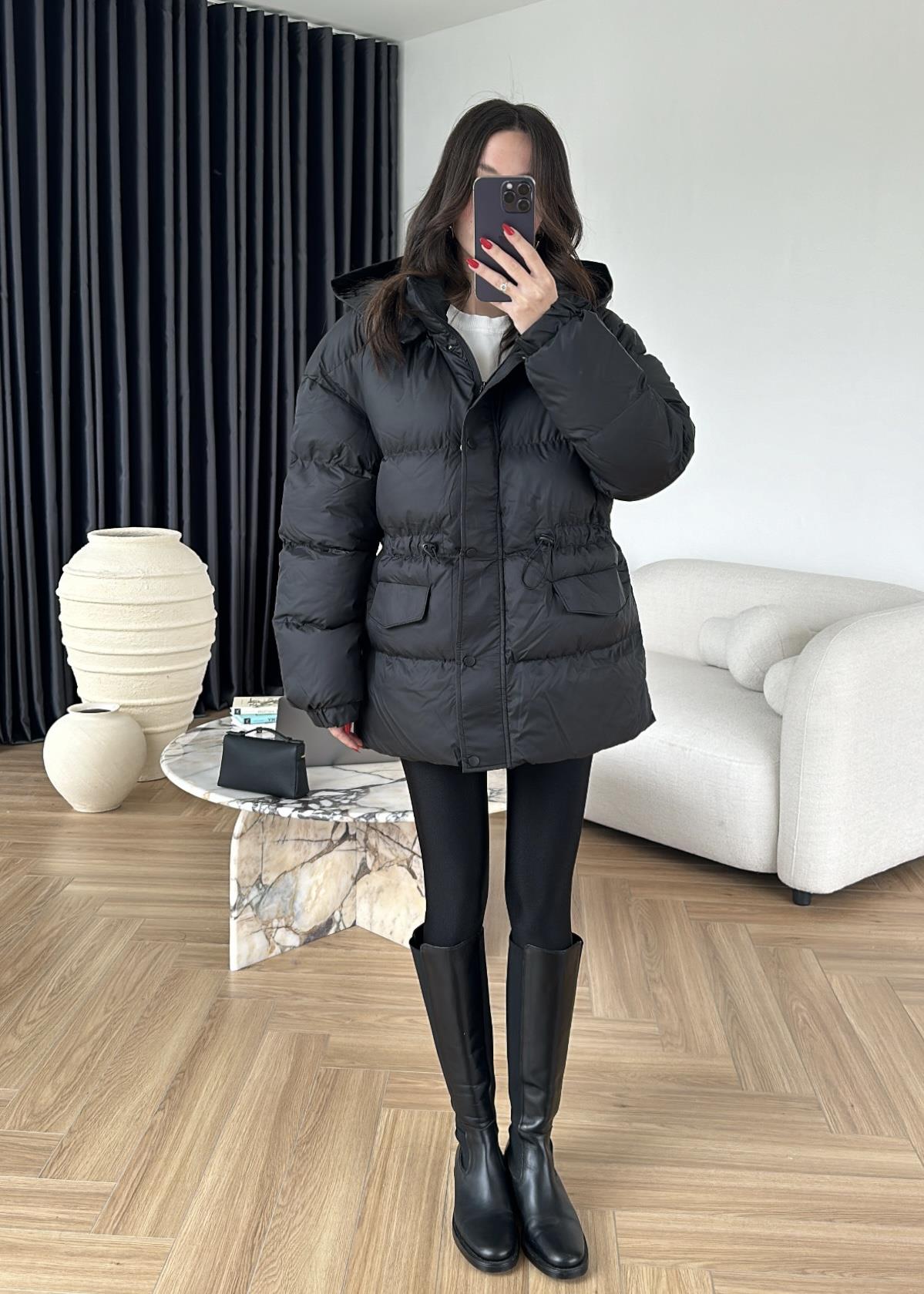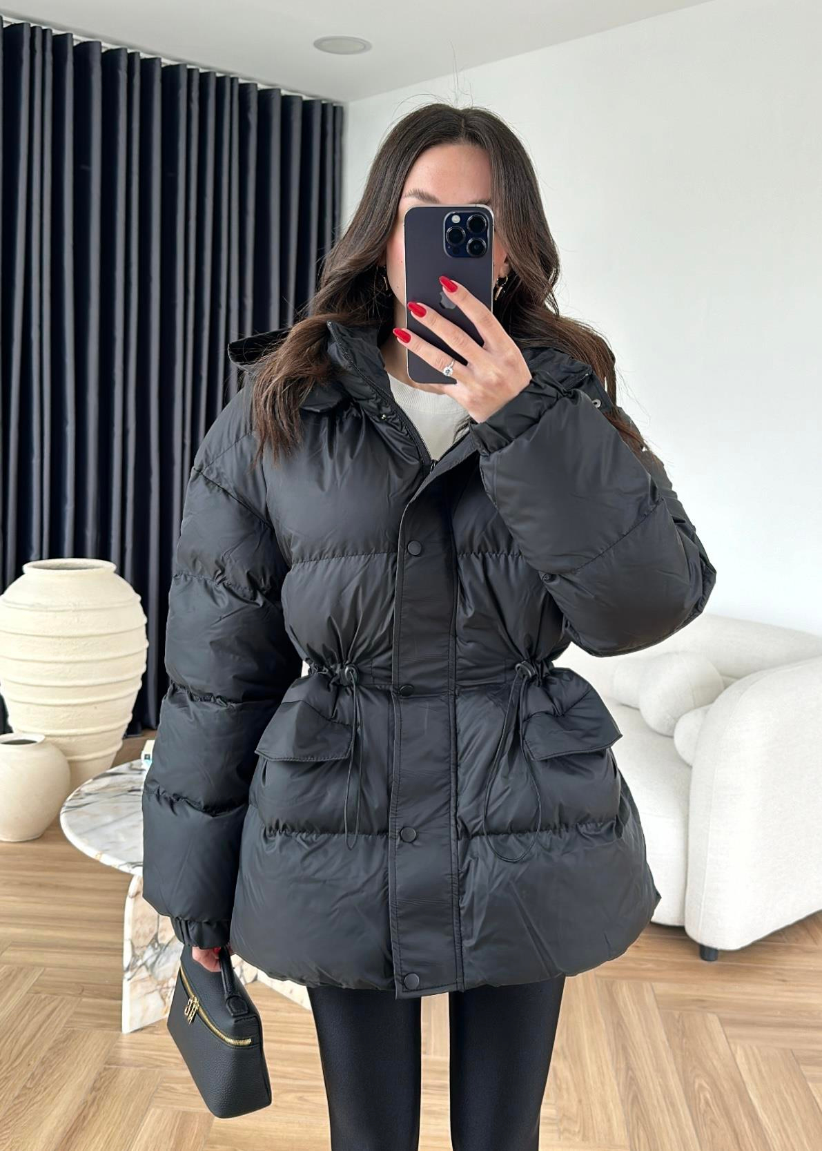 Beli Ayarlanabilir Lastikli Şişme Mont SİYAH