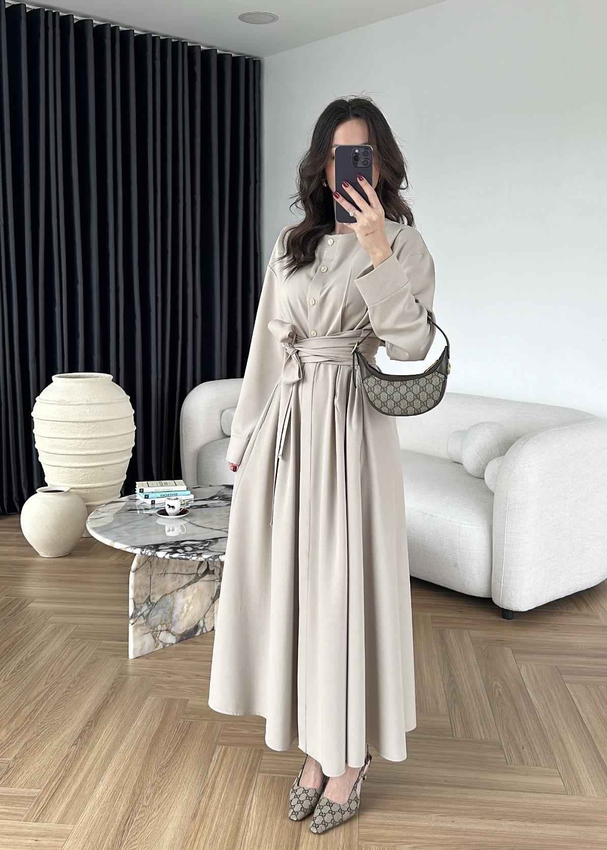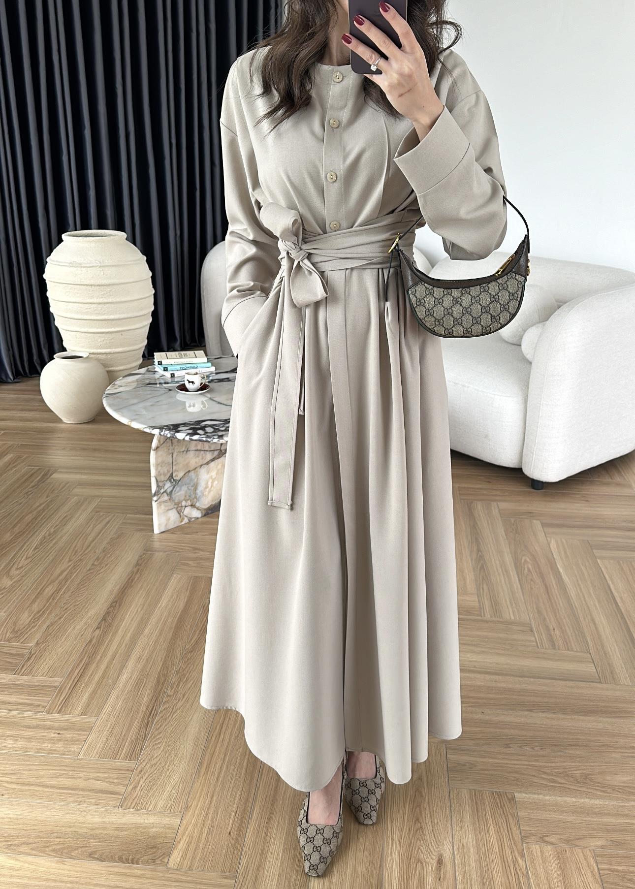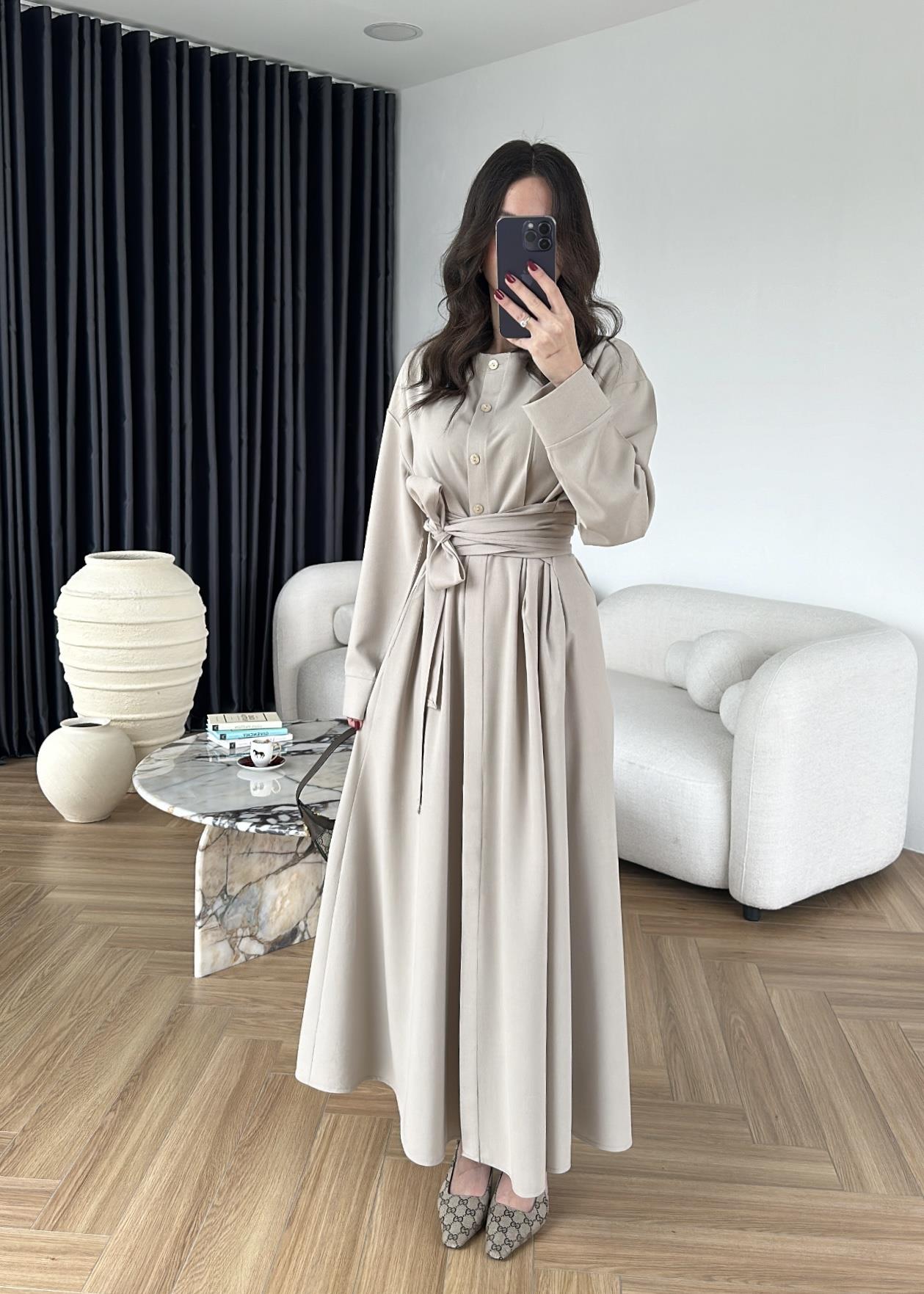 Beli Bağlamalı Poliviskon Elbise TAŞ