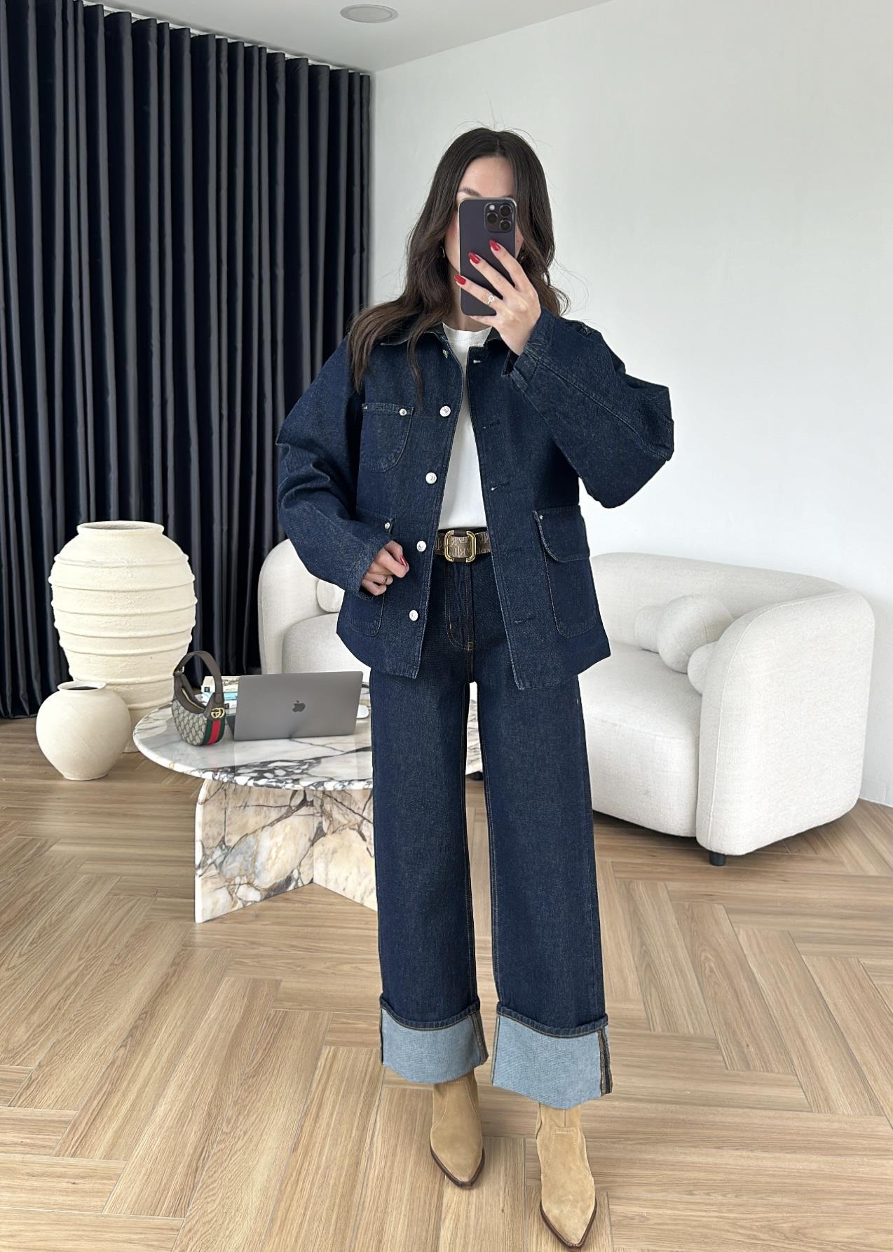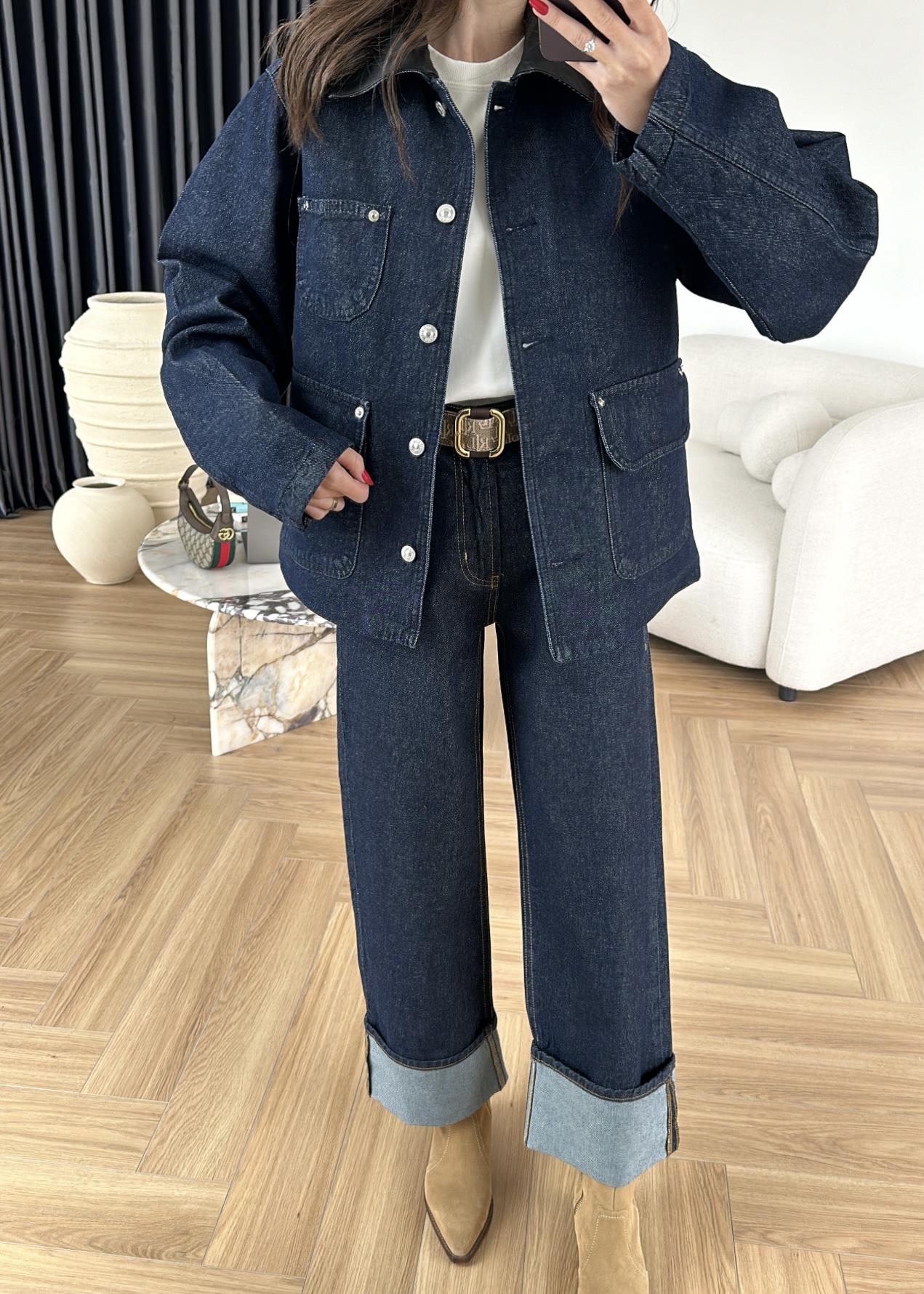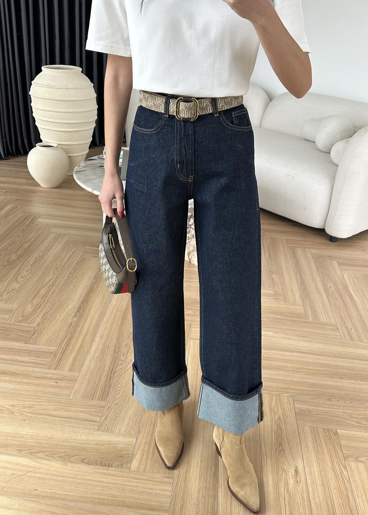 Bilek Boy Paçası Katlı Jean LACİVERT