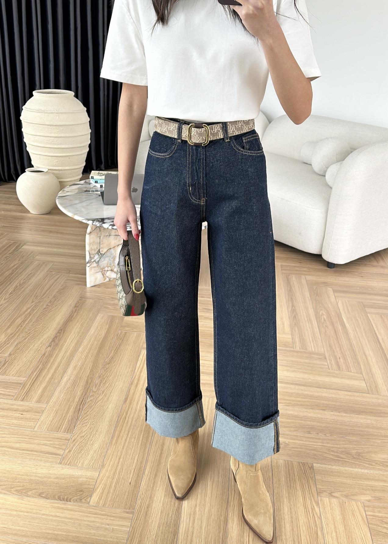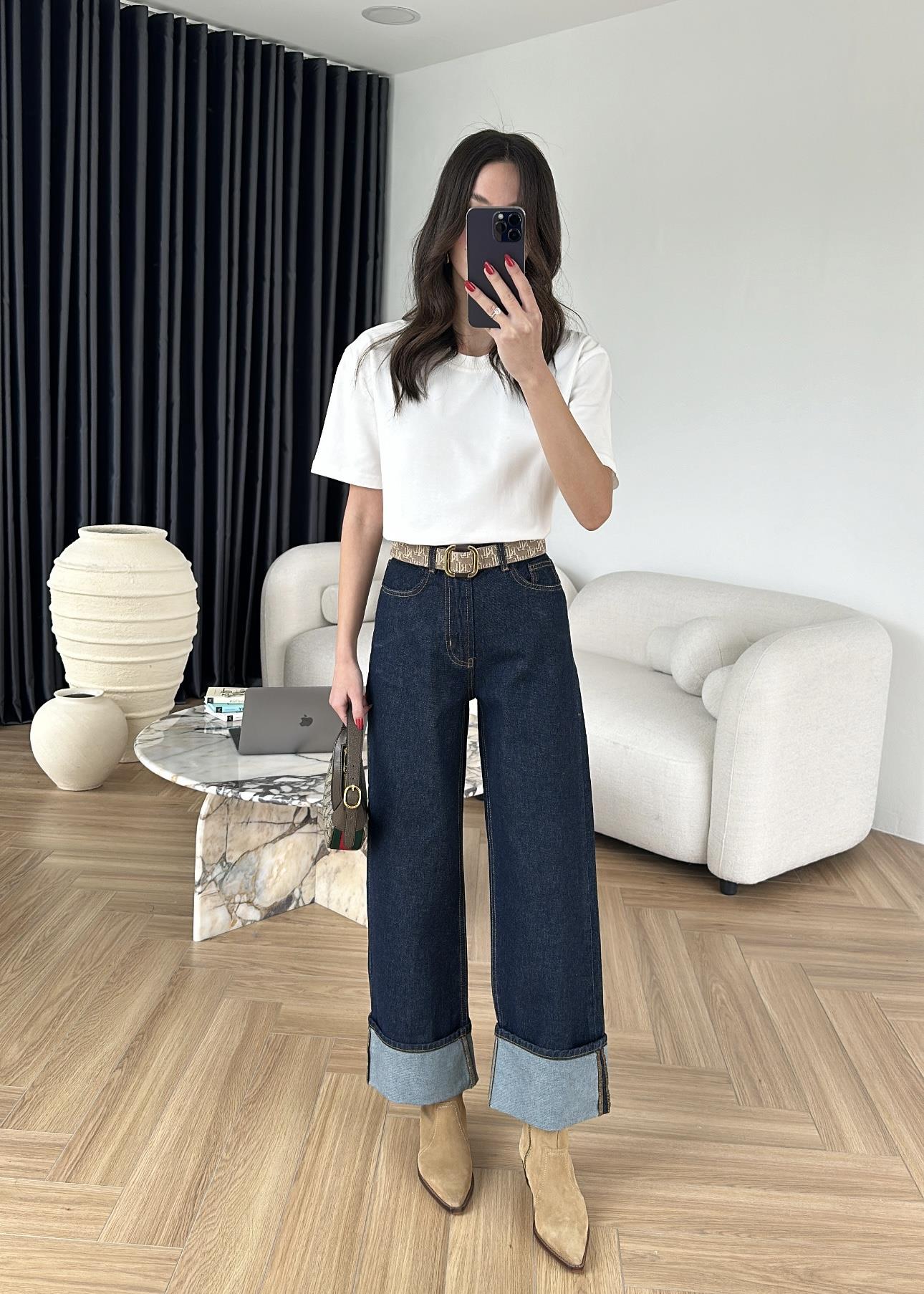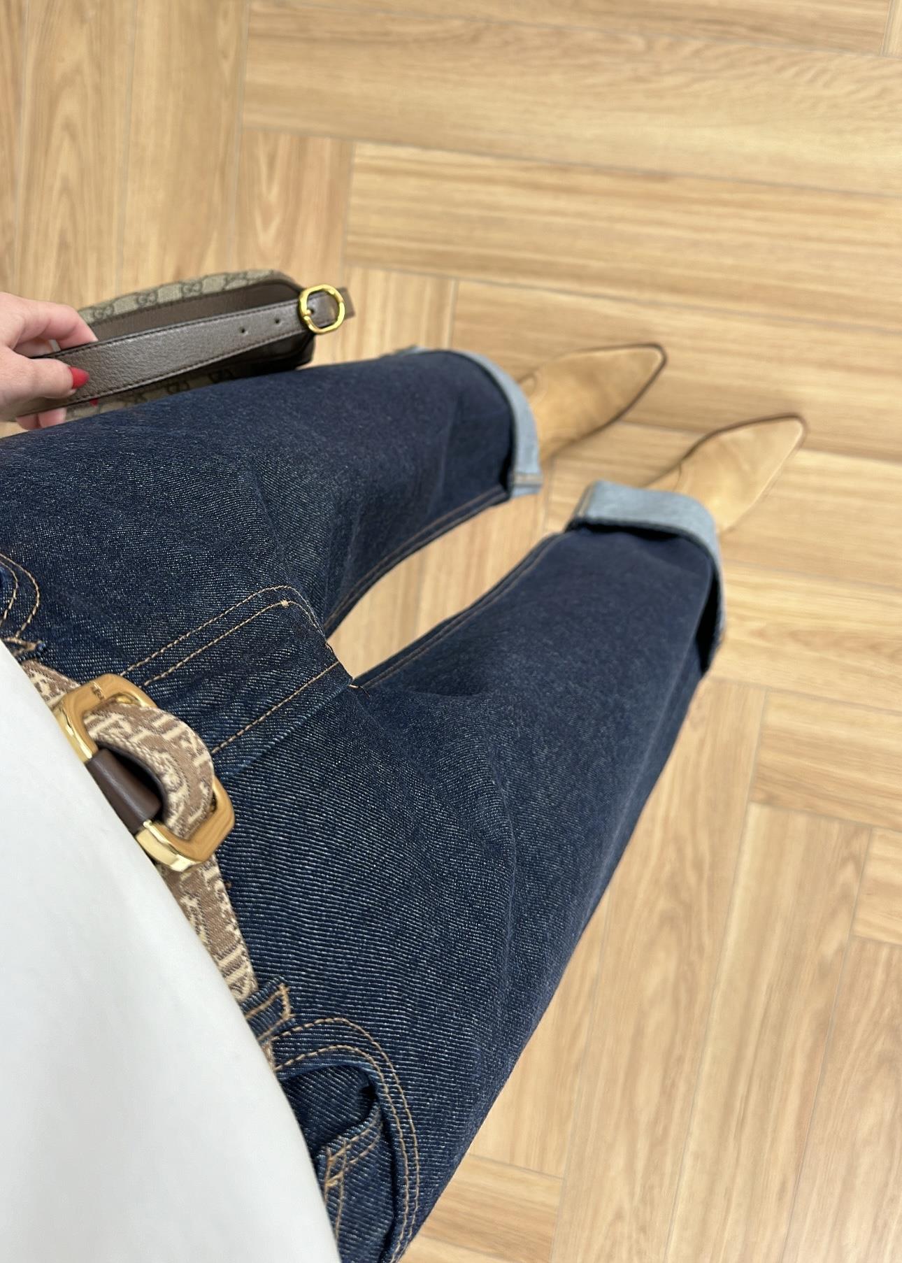 Bilek Boy Paçası Katlı Jean LACİVERT