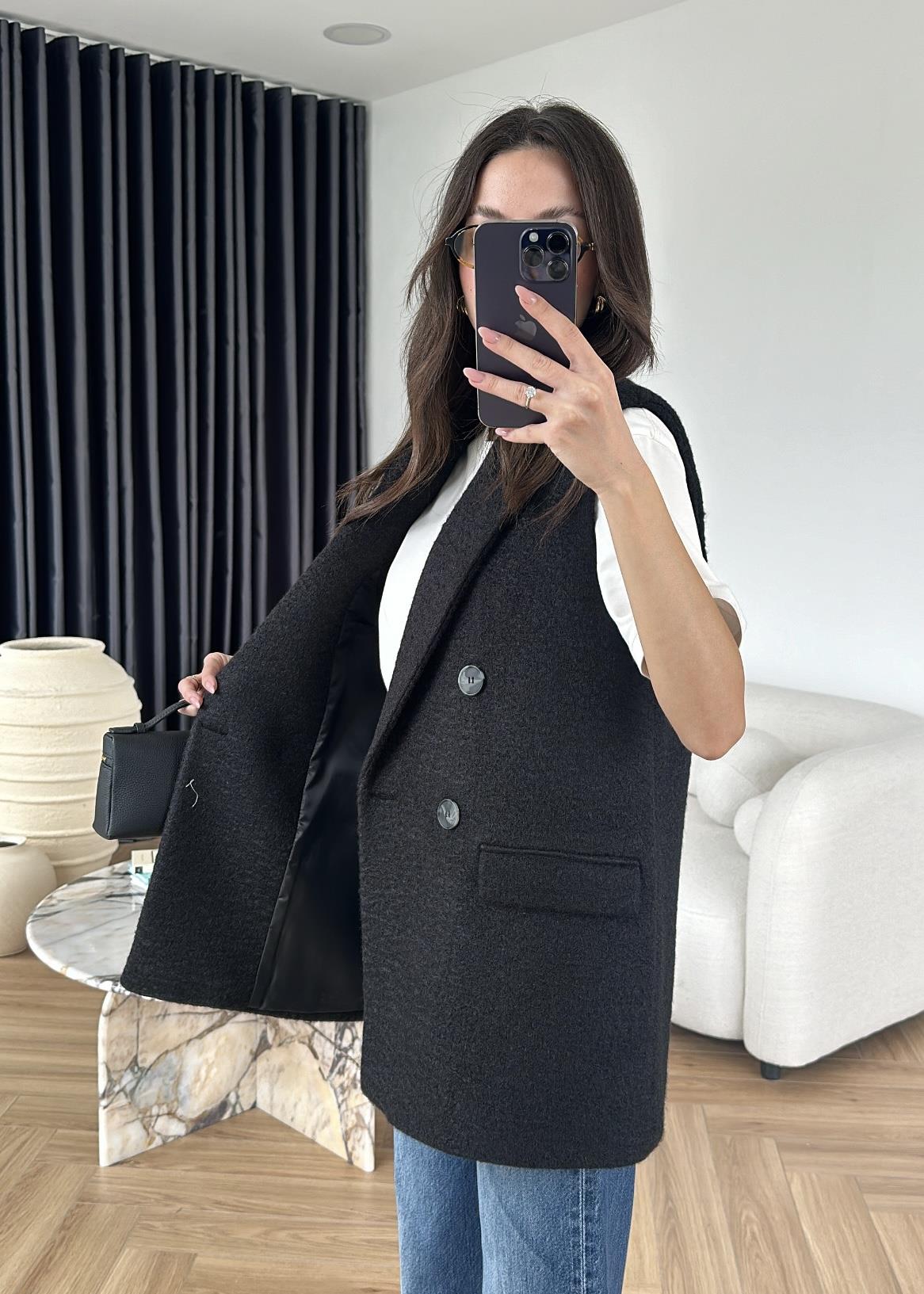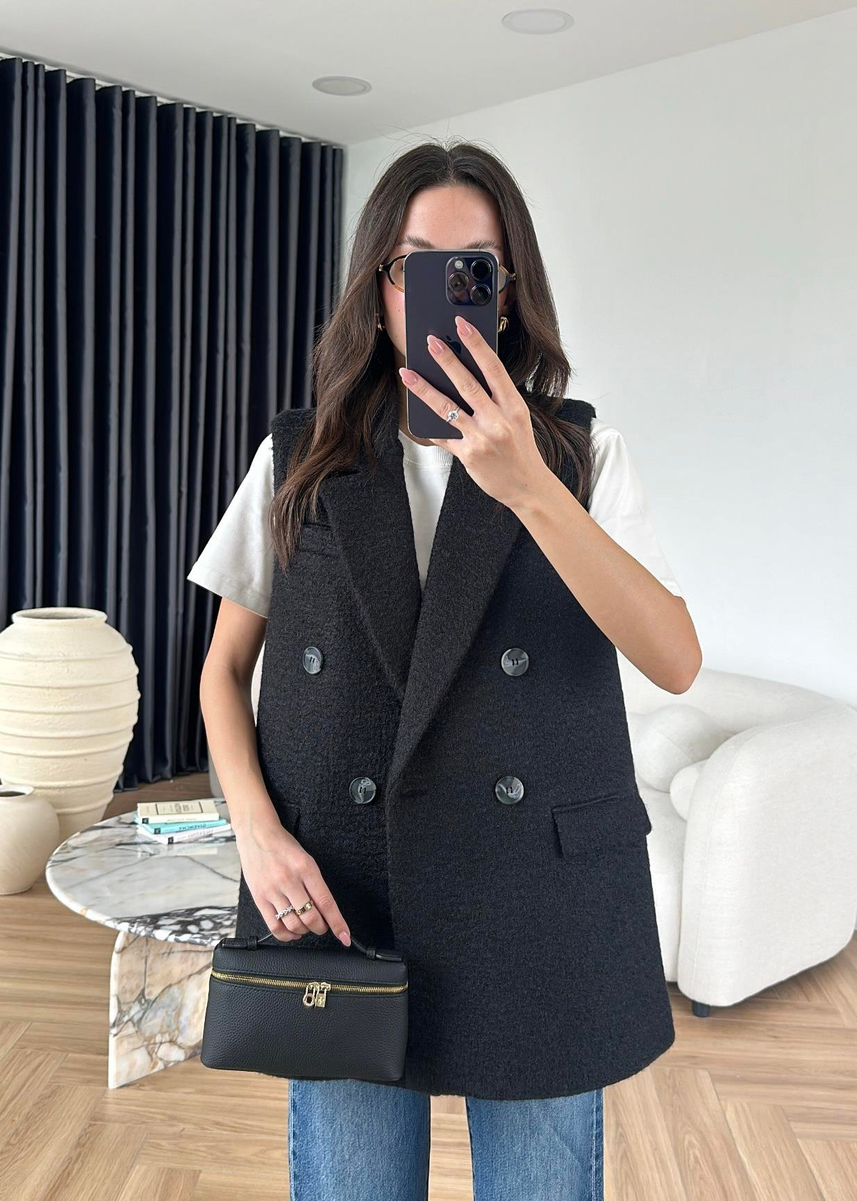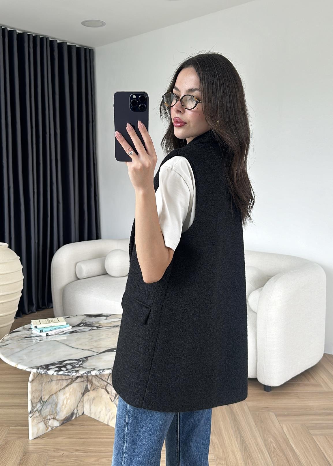 Buklet Kaşe Yelek SİYAH
