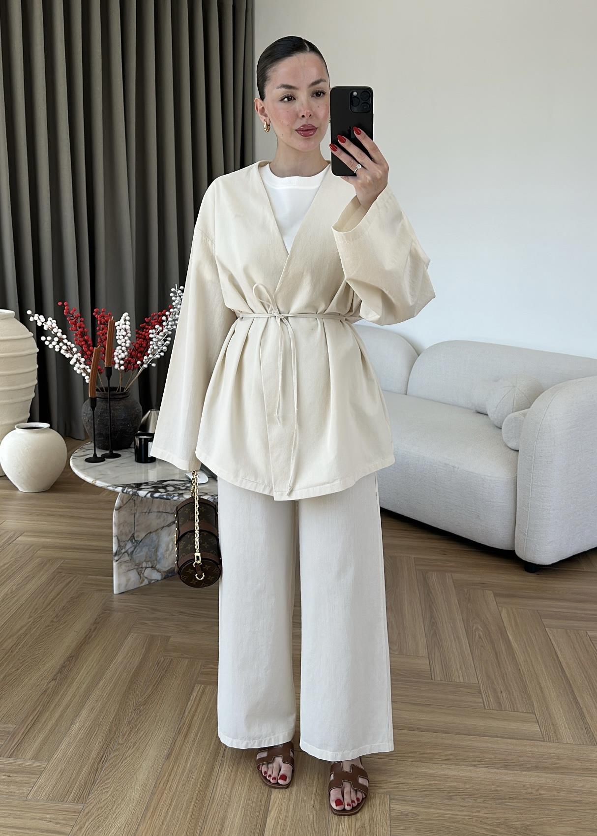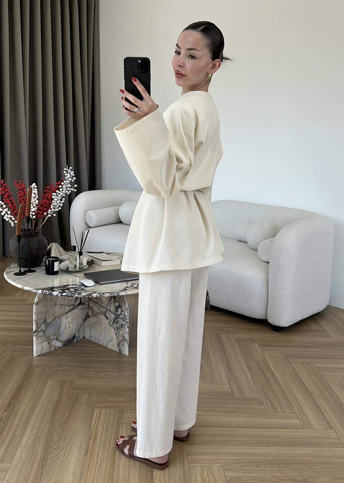Claire Keten Kimono Takım BEYAZ Claire Keten Kimono Takım BEJ
