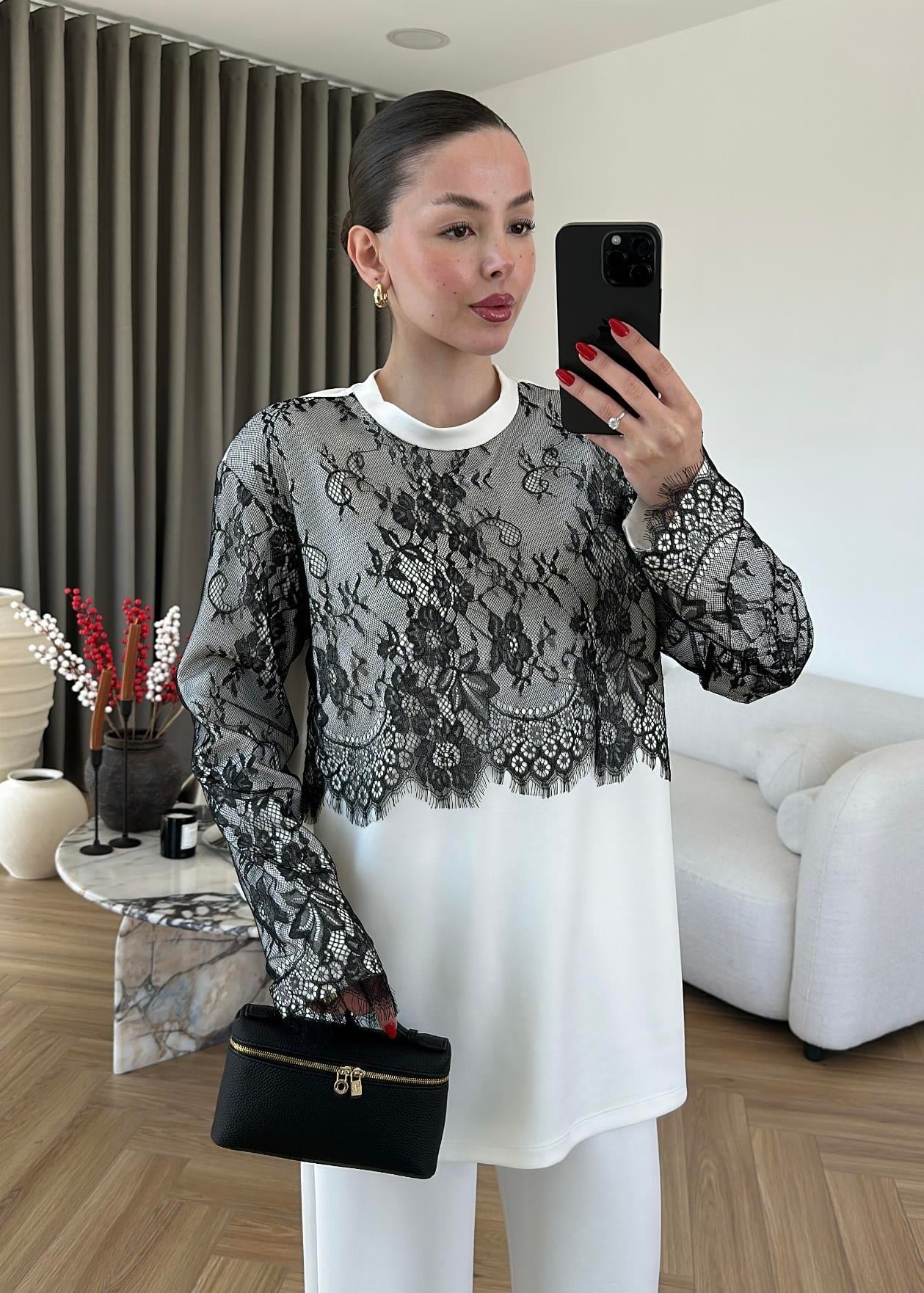 Dantelli Modal Takım BEYAZ (Gx4222)