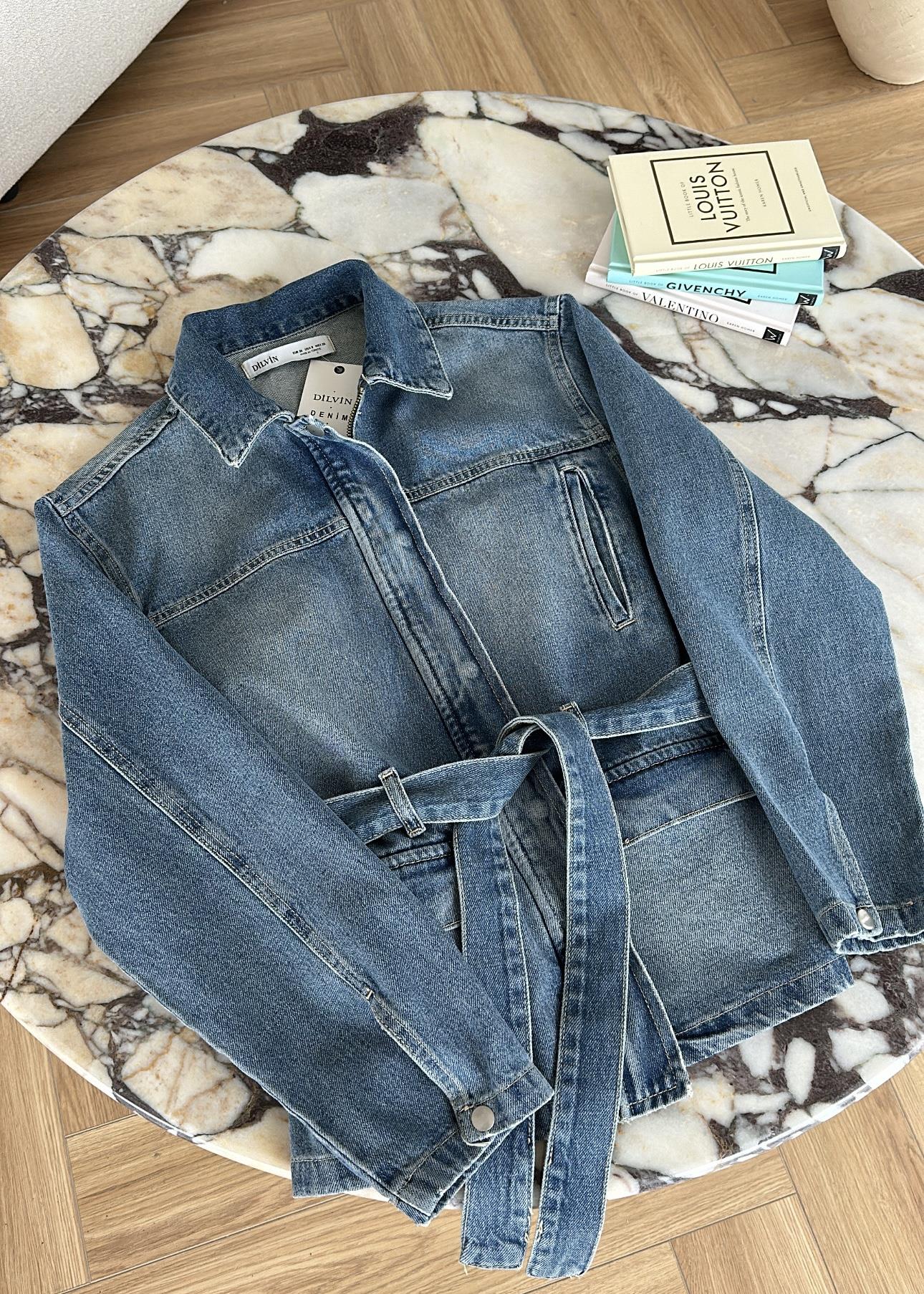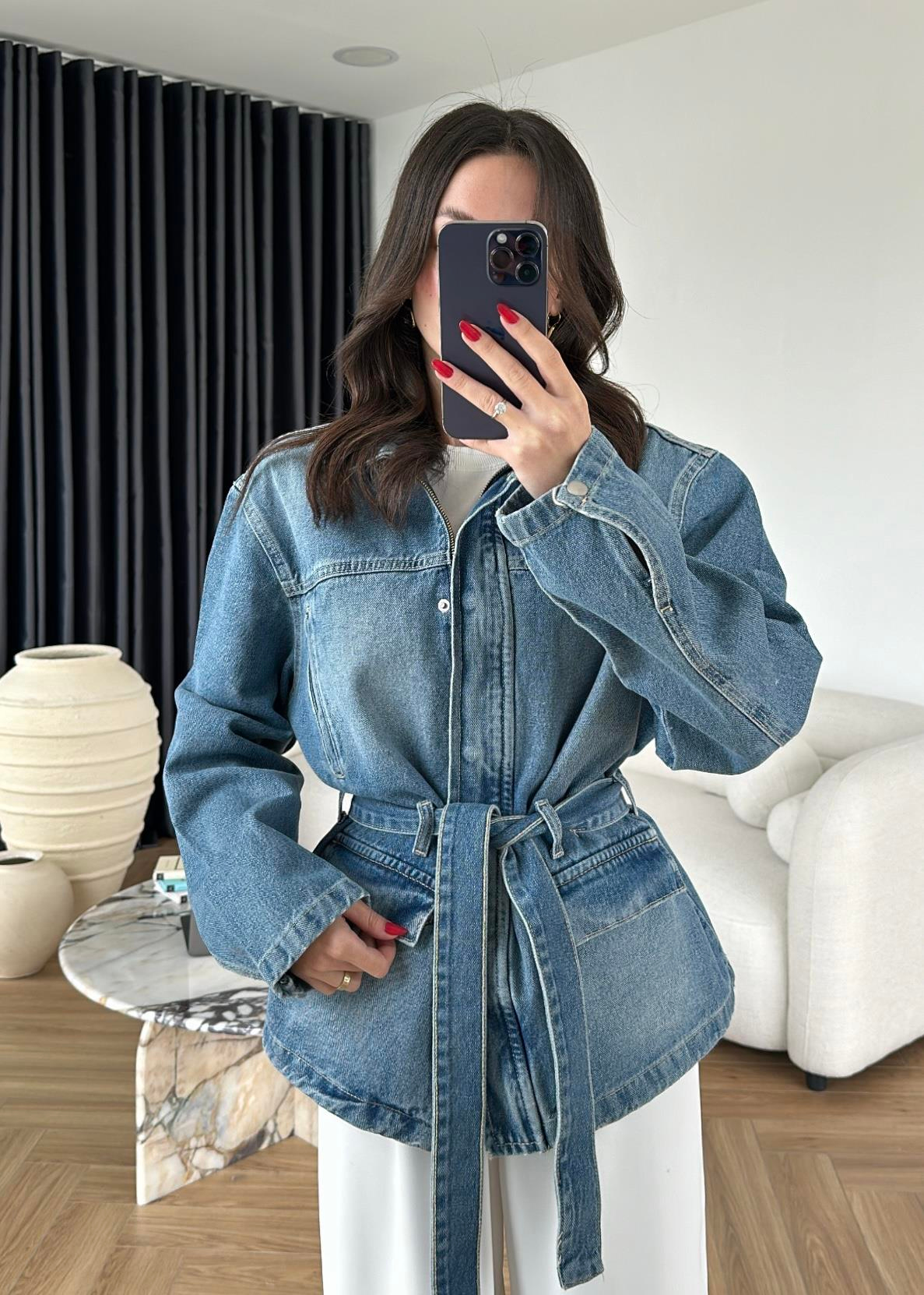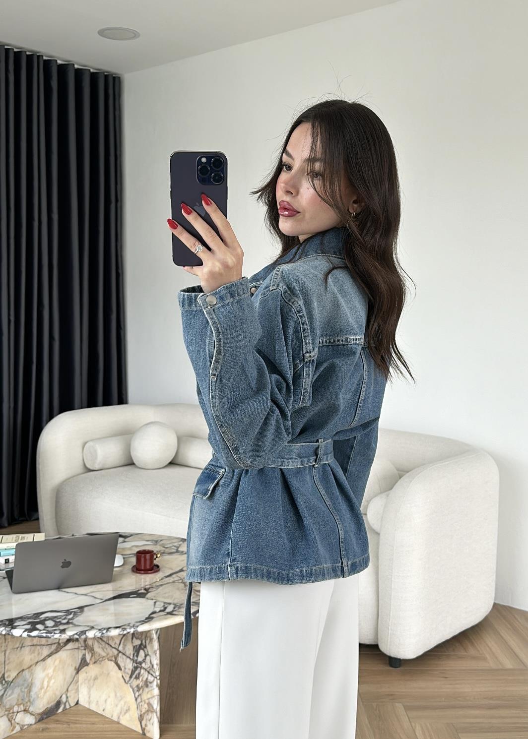 Dilvin Kemerli Kot Ceket BUZ MAVİ