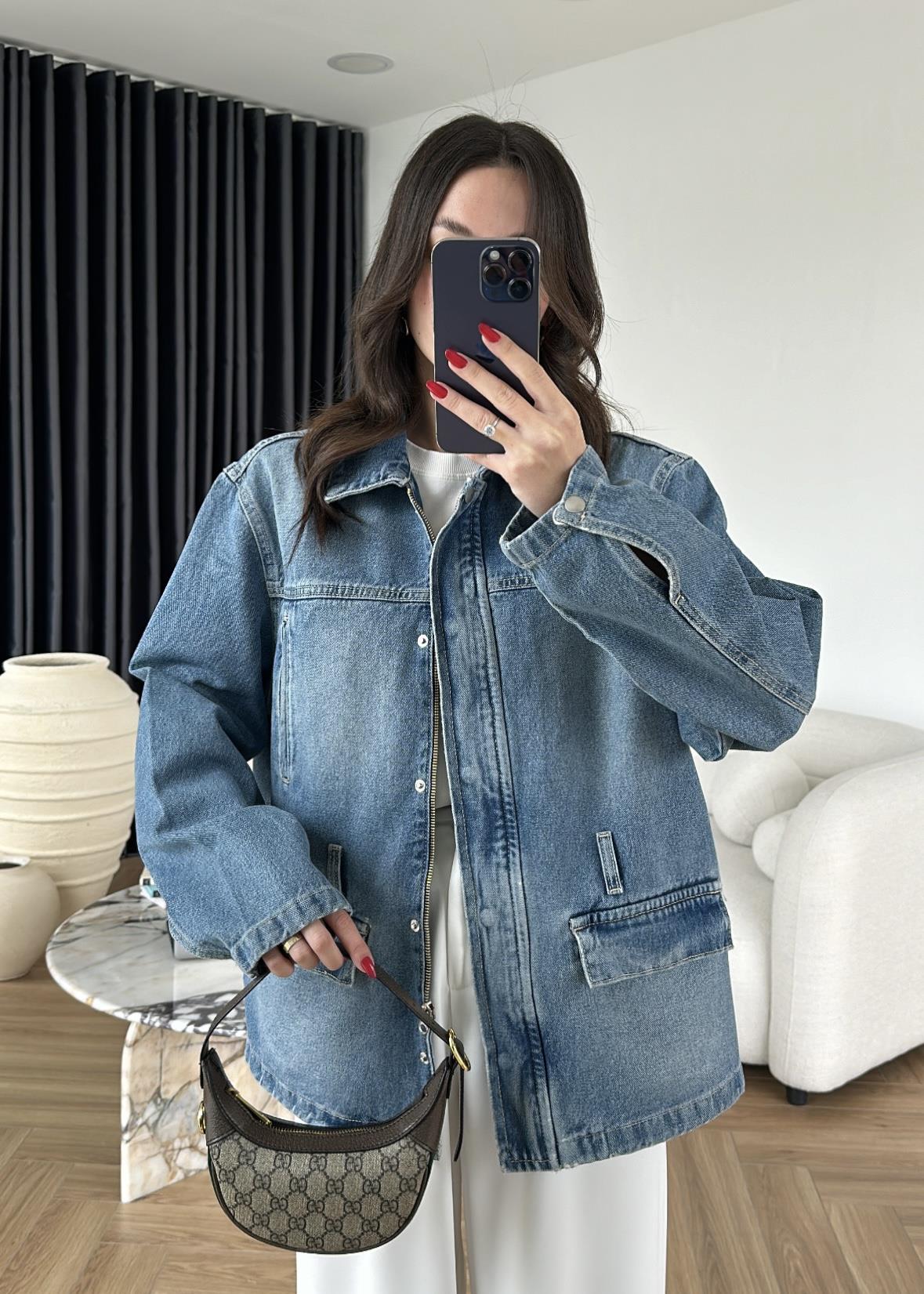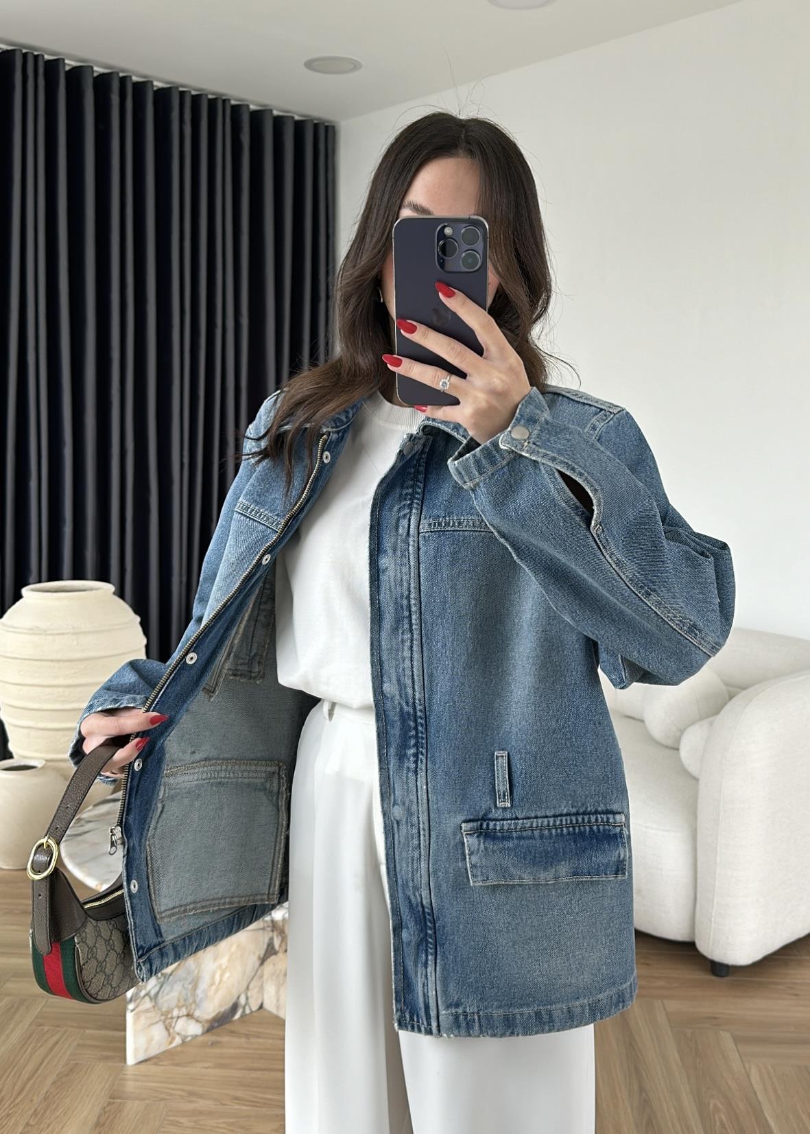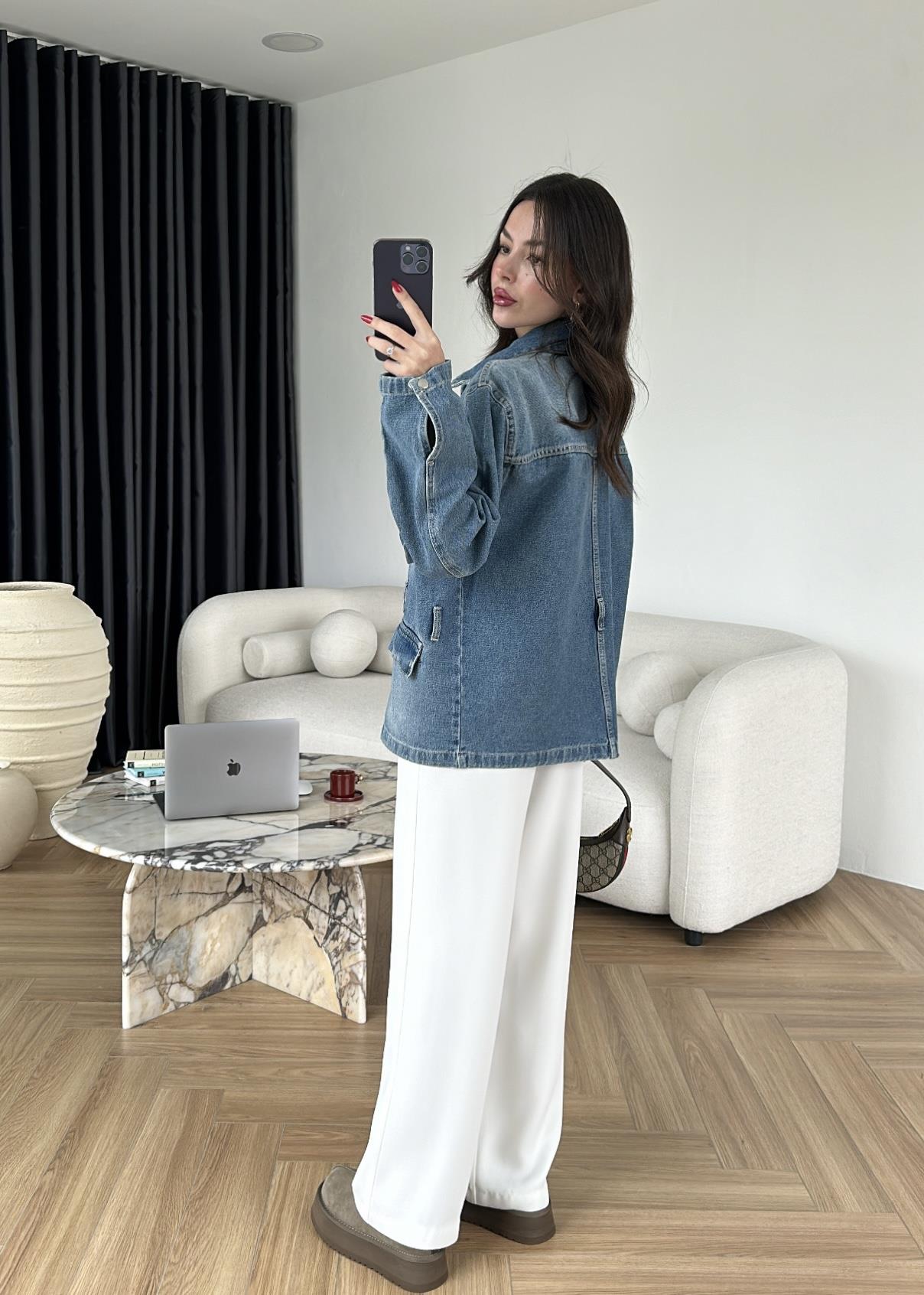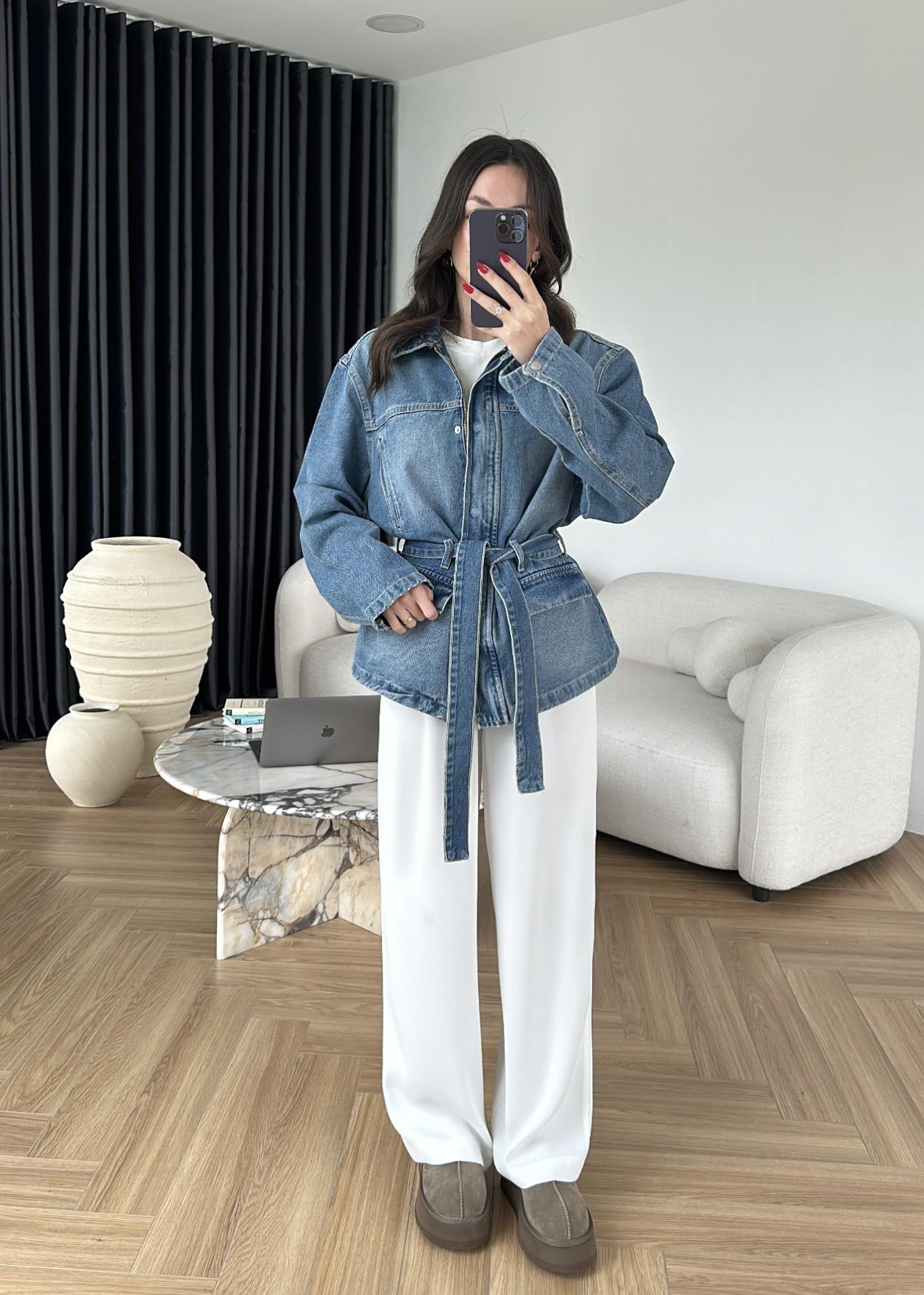 Dilvin Kemerli Kot Ceket BUZ MAVİ