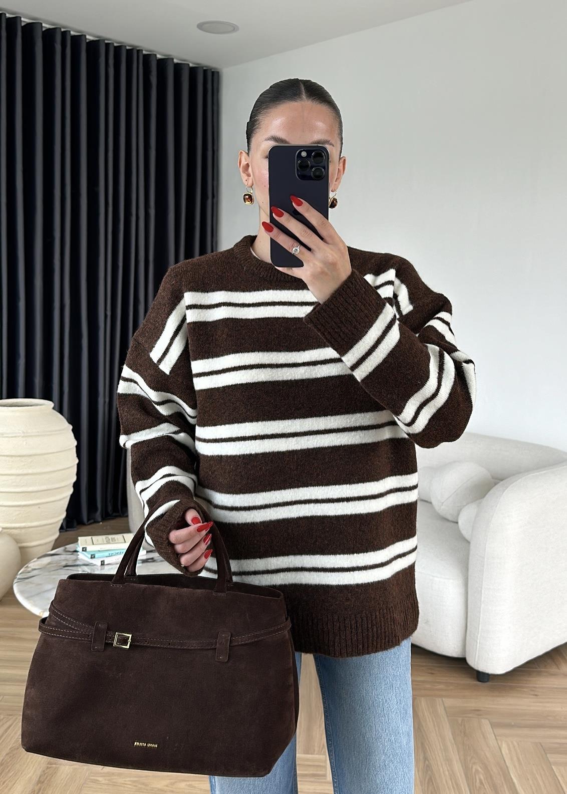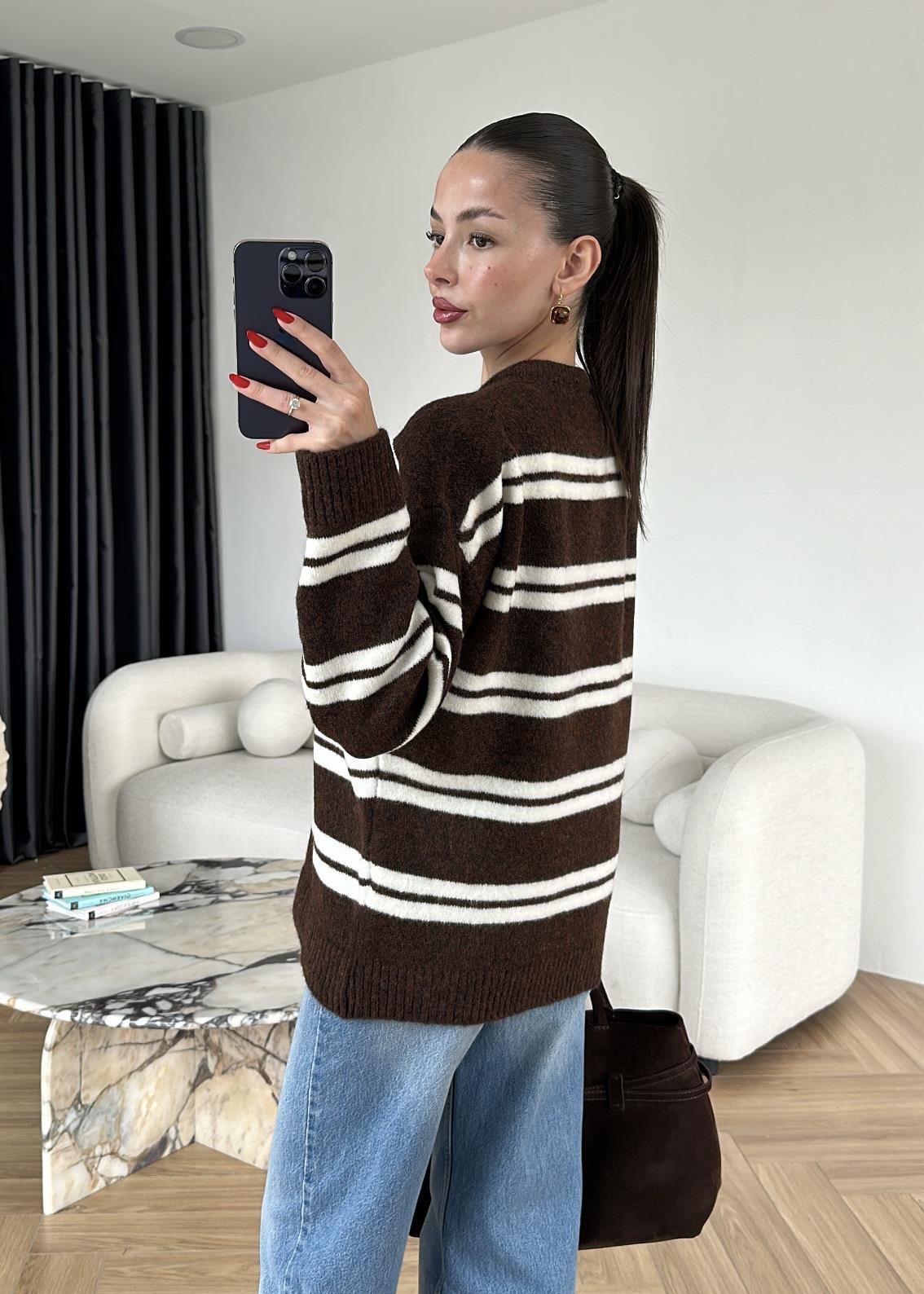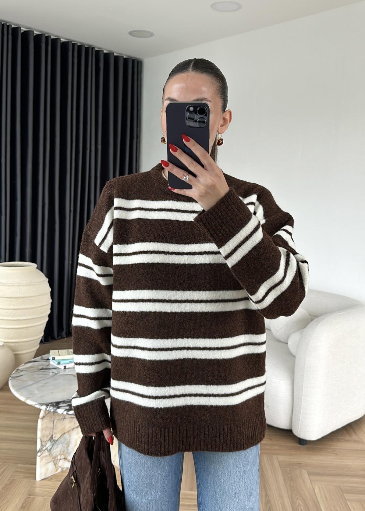 Dublin Çizgili Kazak ACI KAHVE