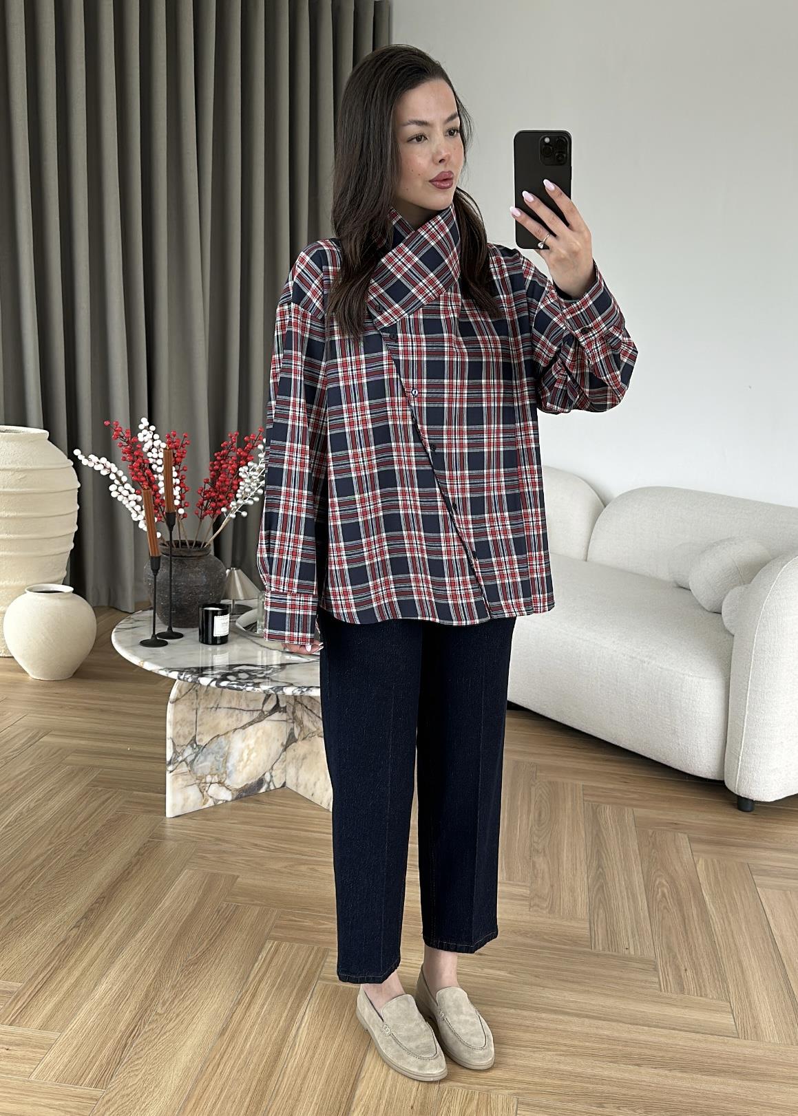 Çapraz Düğmeli Oduncu Gömlek LACİVERT (Gx4146)