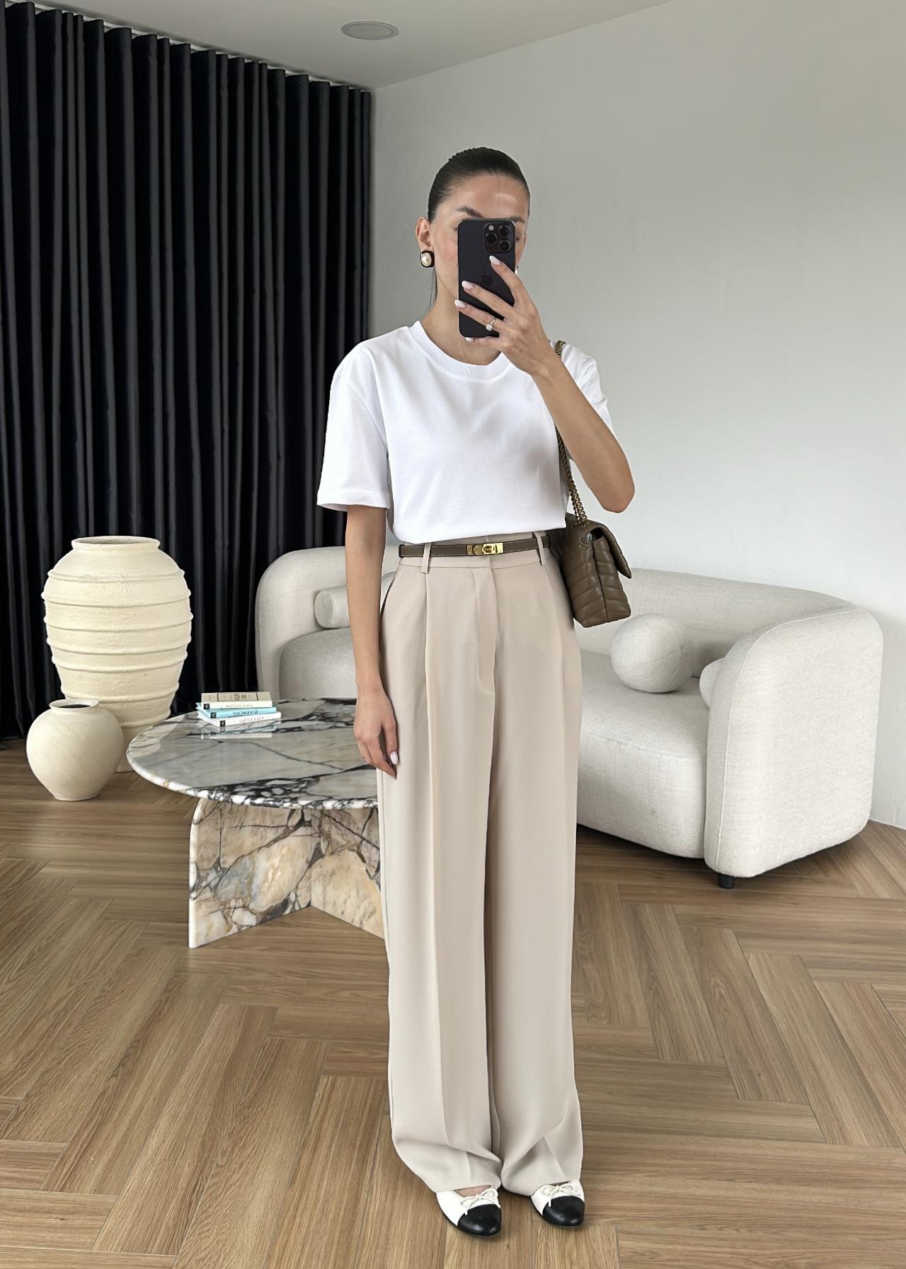 Çekimde 36 Beden kullanılmıştır. Bel 34cm'dir. Ara bedenler bir küçük almalı. Krep kumaştır