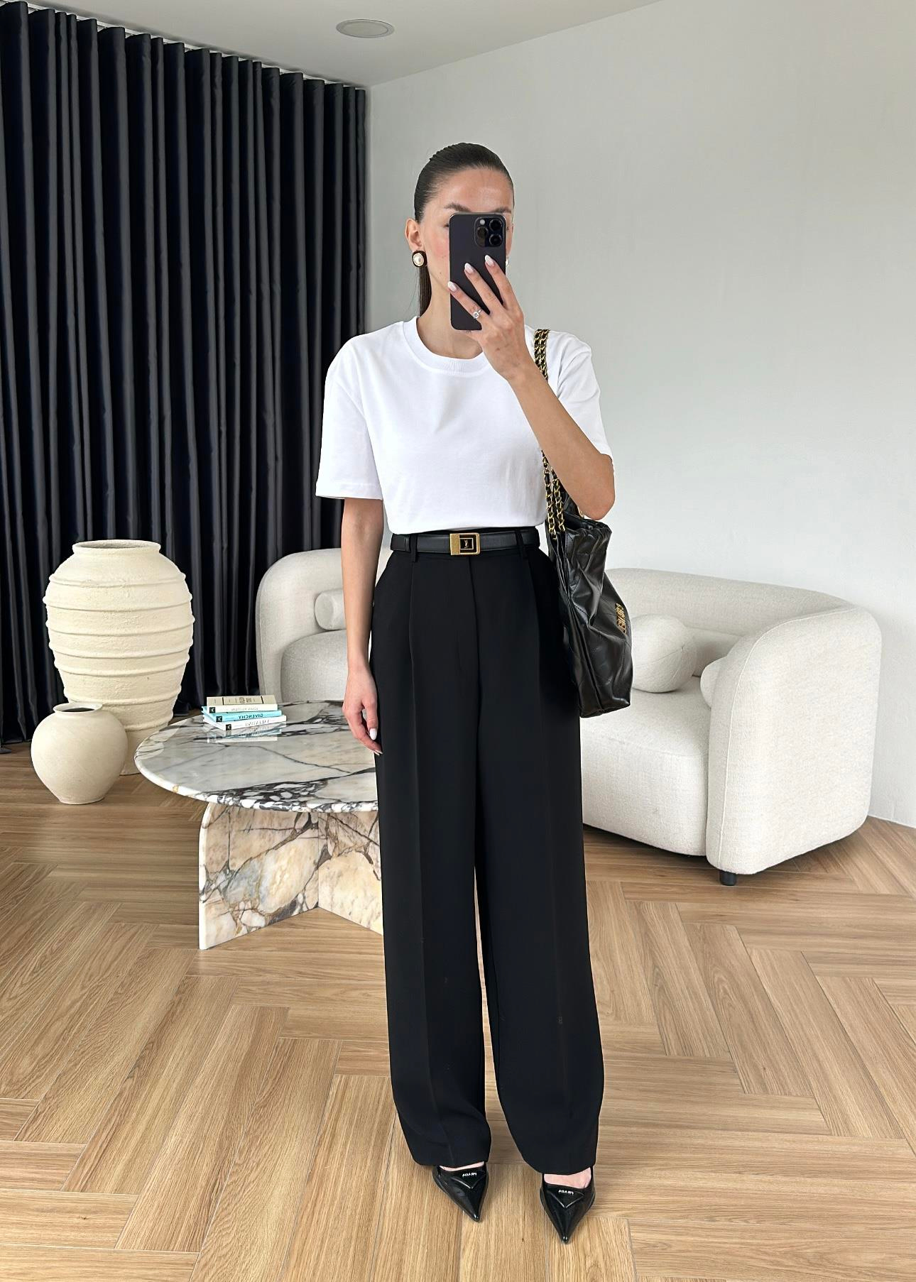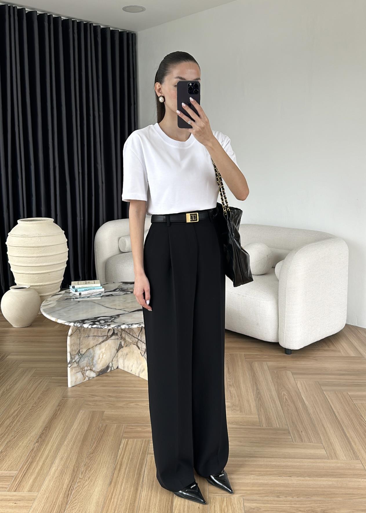 Çekimde 36 Beden kullanılmıştır. Bel 34cm'dir. Ara bedenler bir küçük almalı. Krep kumaştır