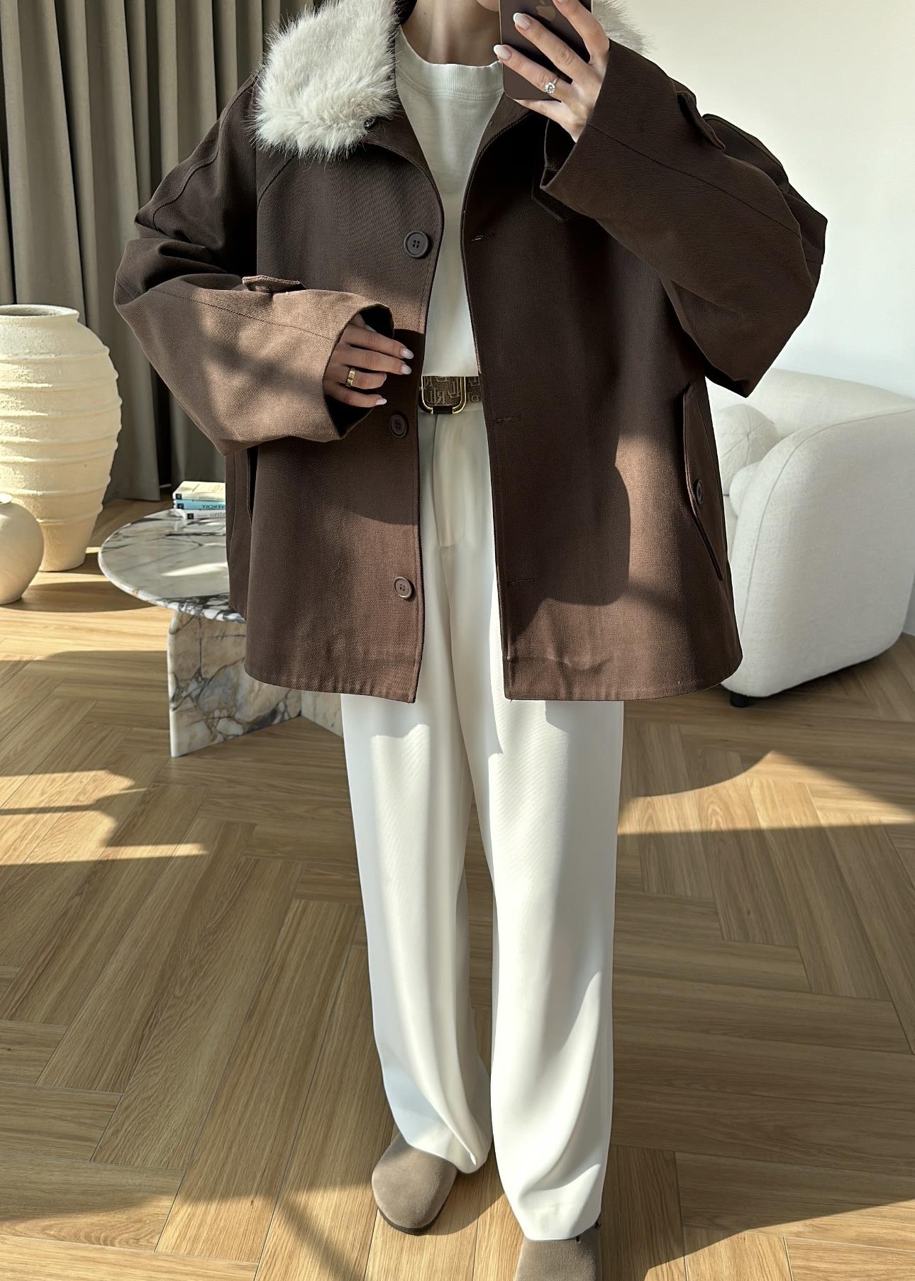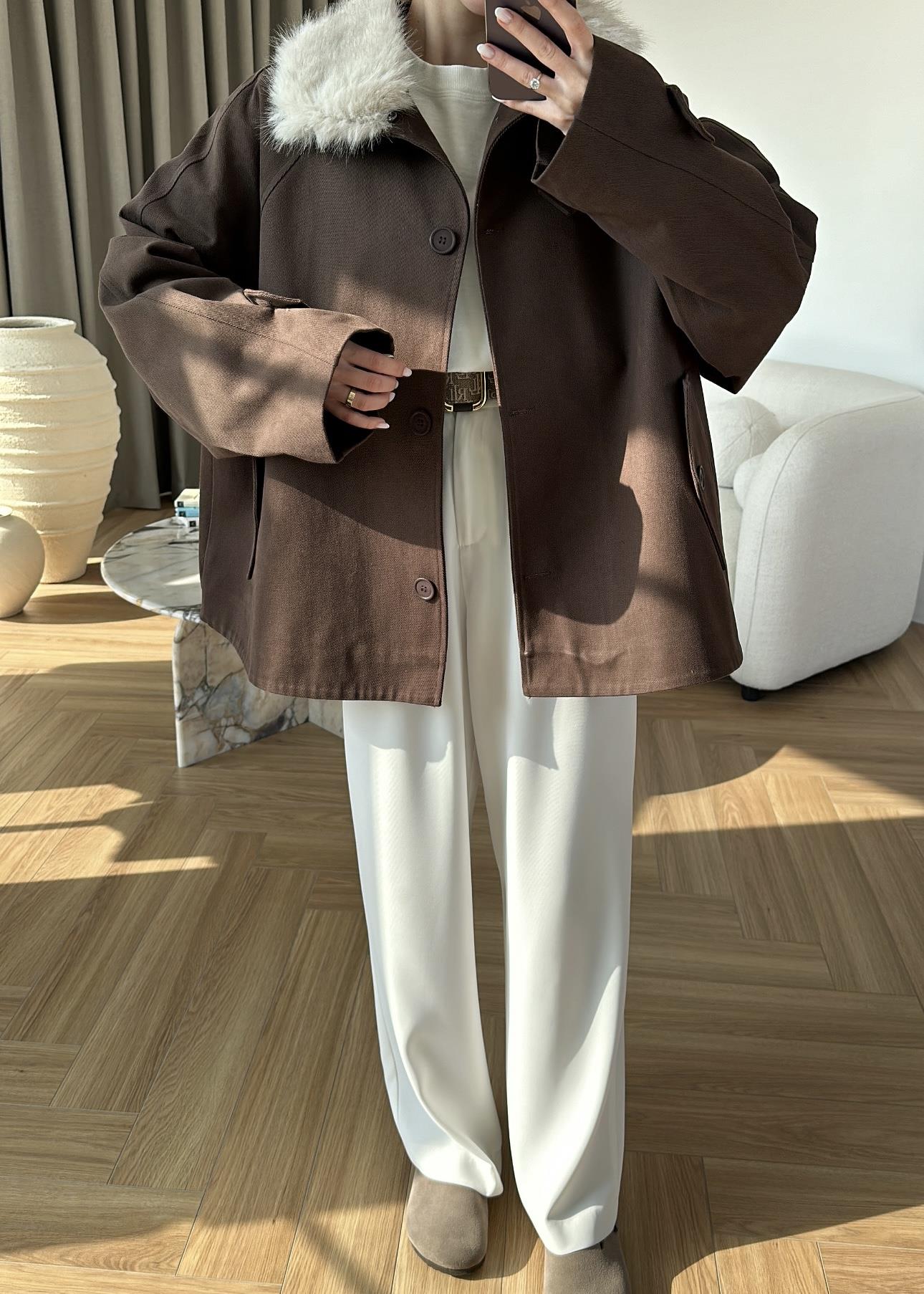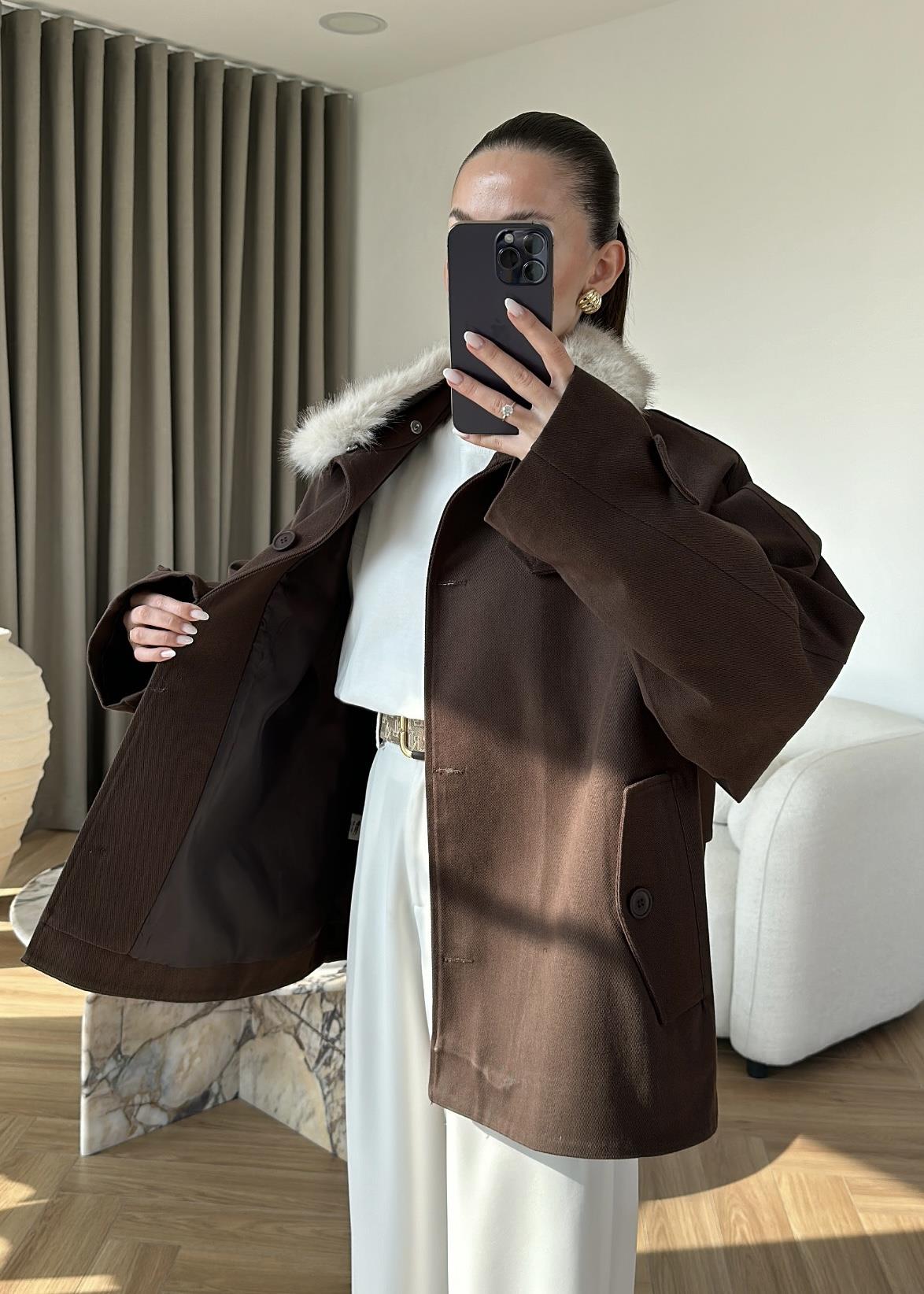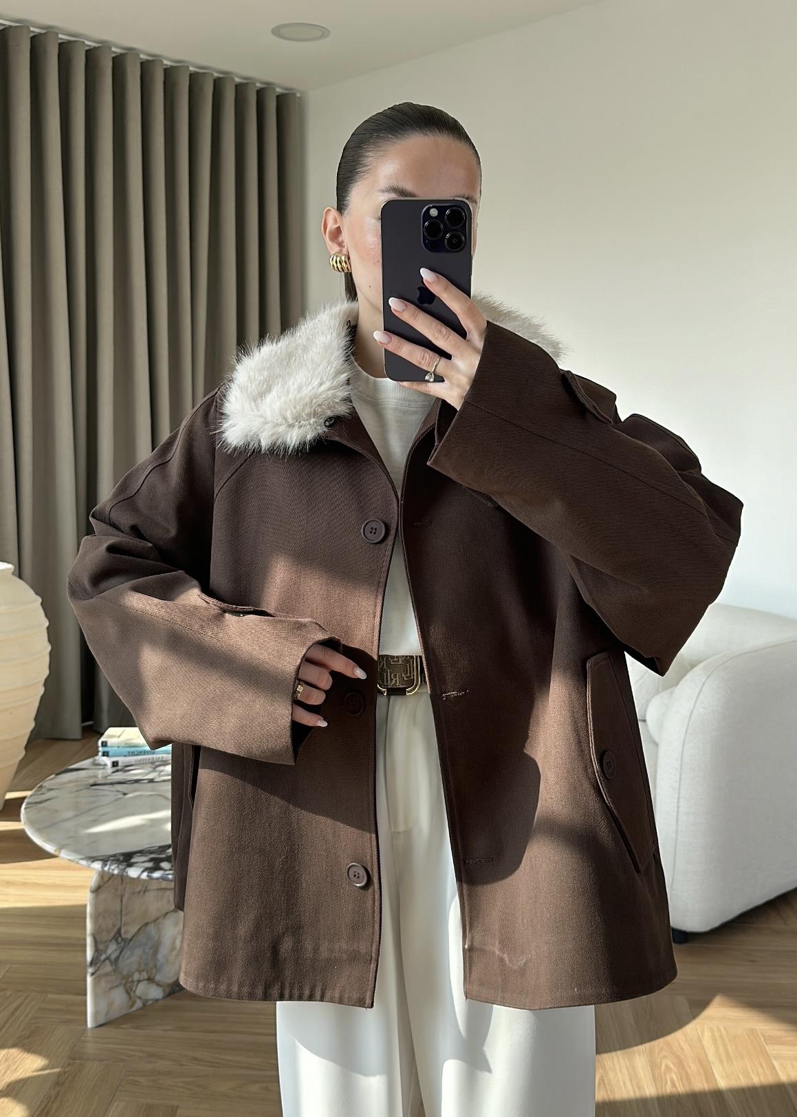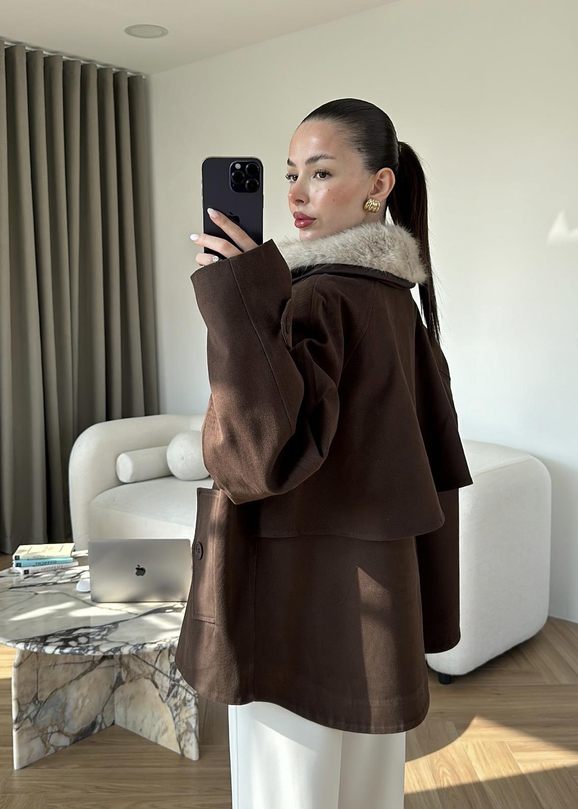 Kürk Detaylı Uzun Parka Ceket ACI KAHVE