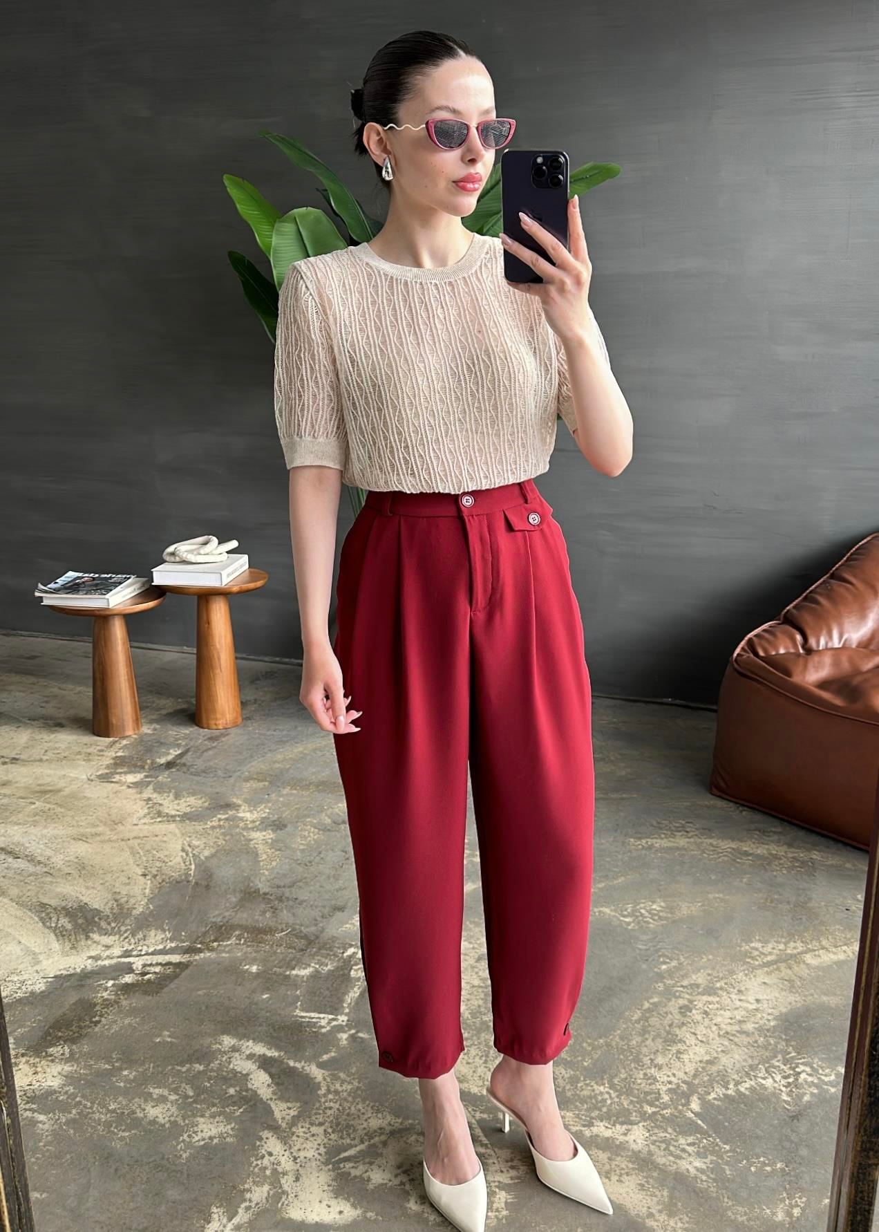 Paçası Düğmeli Şalvar Pantolon BORDO