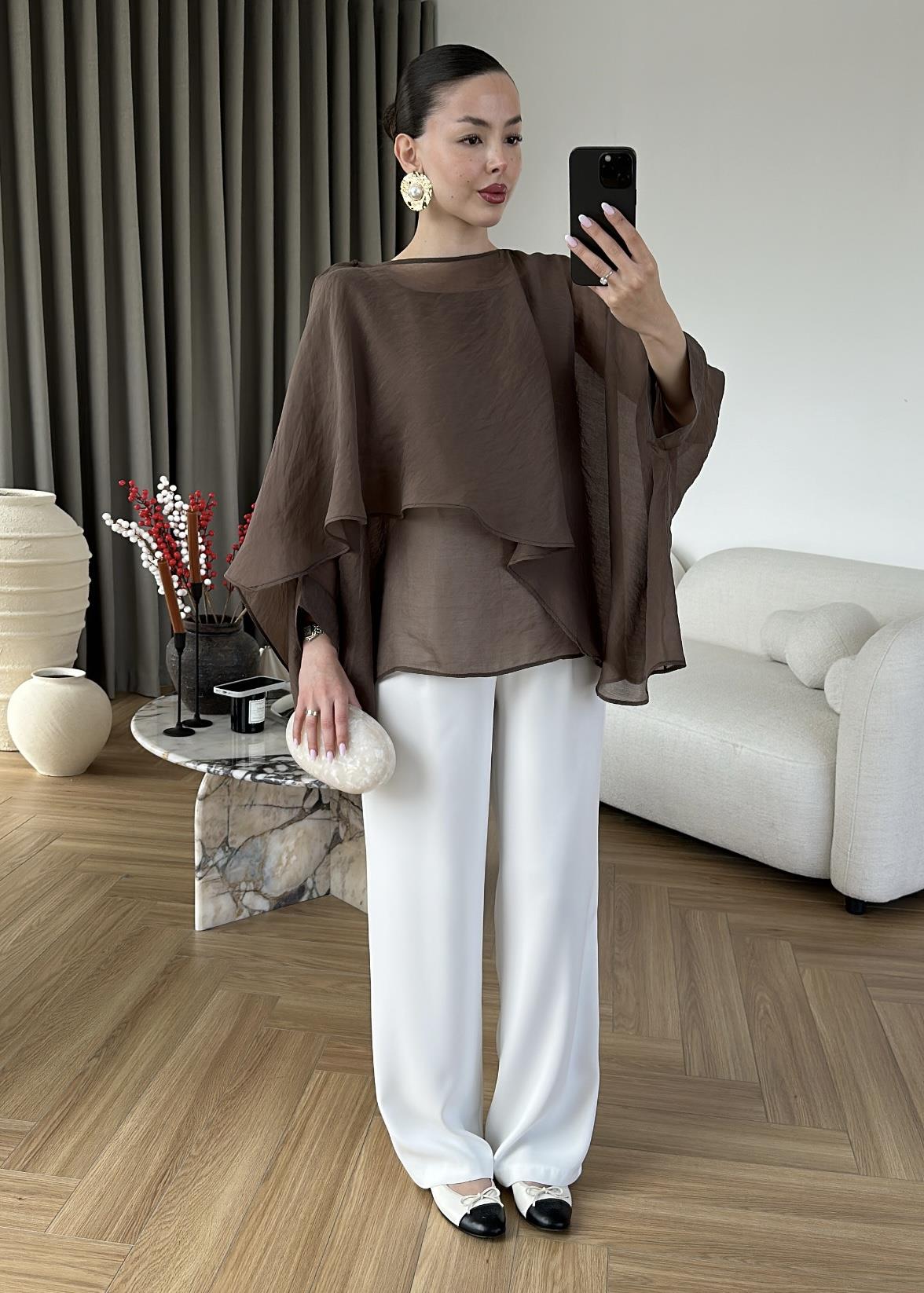 Pelerin Yakalı Transparan Bluz ACI KAHVE (Gx4158)