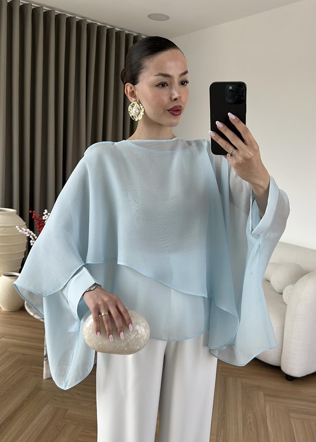 Pelerin Yakalı Transparan Bluz BEBE MAVİ (Gx4158)