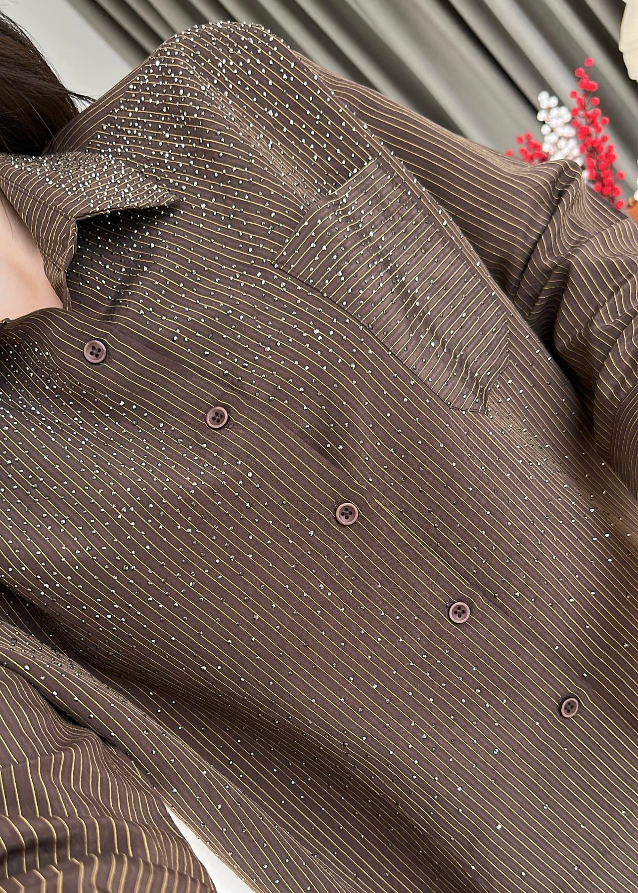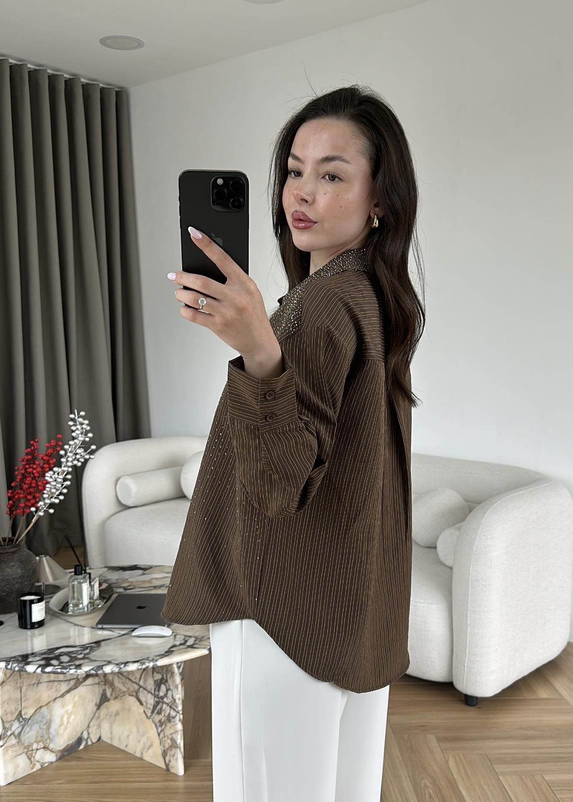 Taşlı Tensel Krinkıl Gömlek ACI KAHVE (Gx4176)
