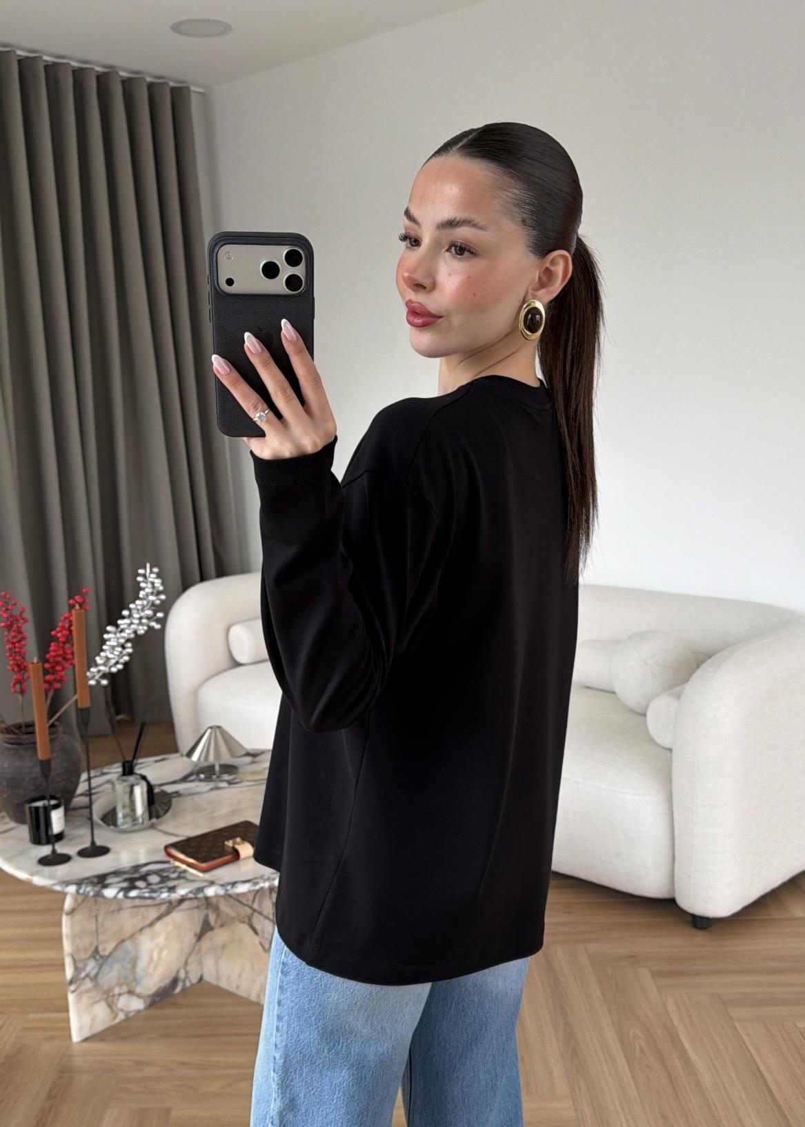 Uzun Kollu Basic Kazak SİYAH (Gx4046)