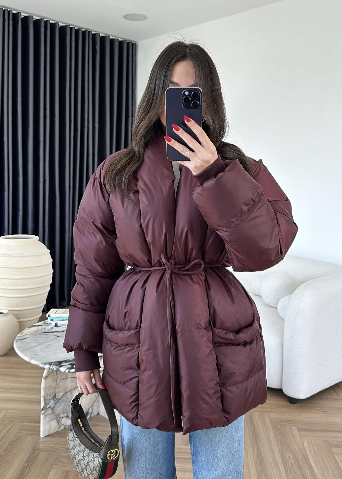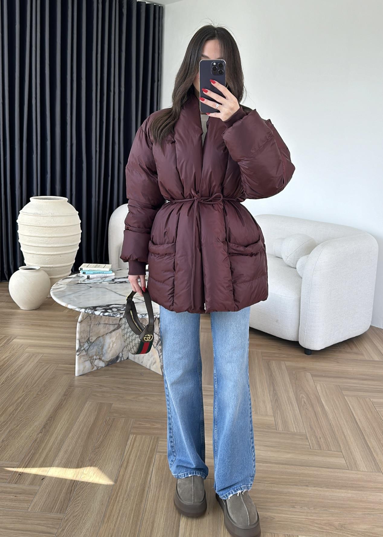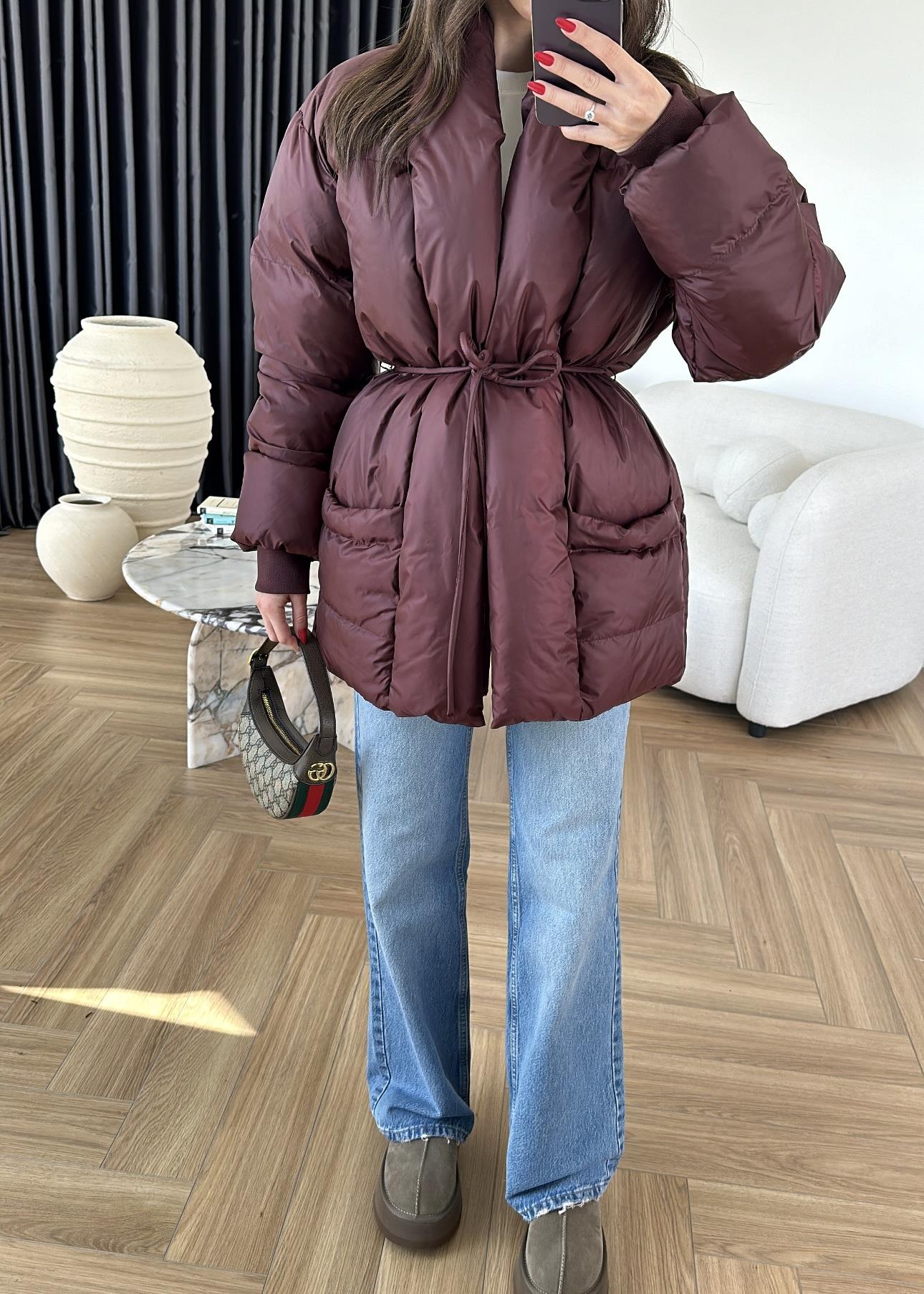İp Bağlamalı Şişme Mont BORDO İp Bağlamalı Şişme Mont ACI KAHVE
