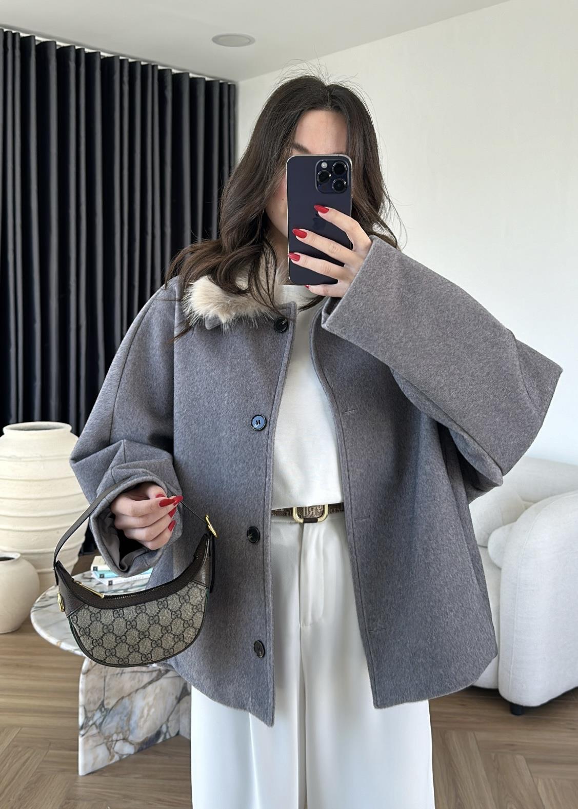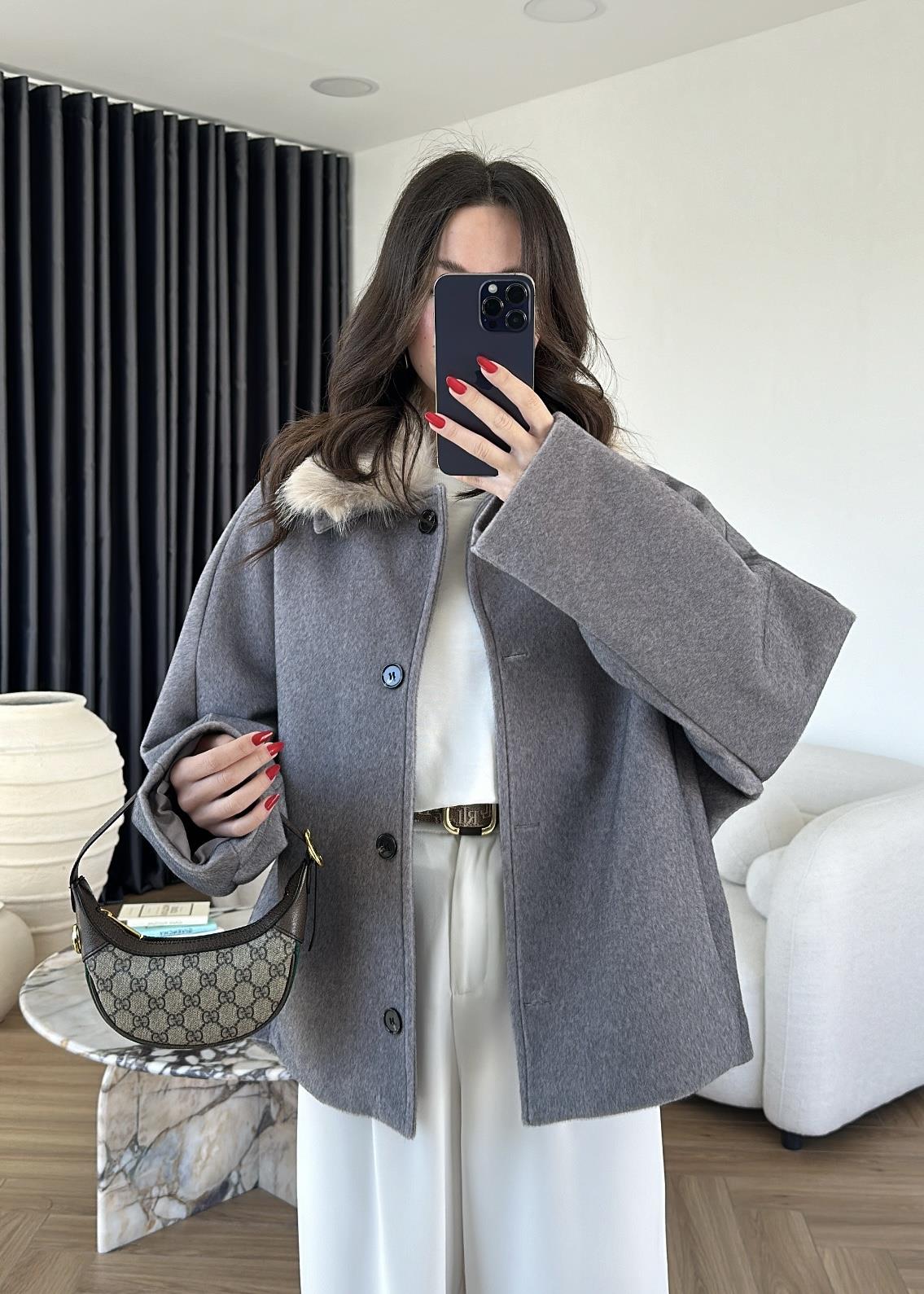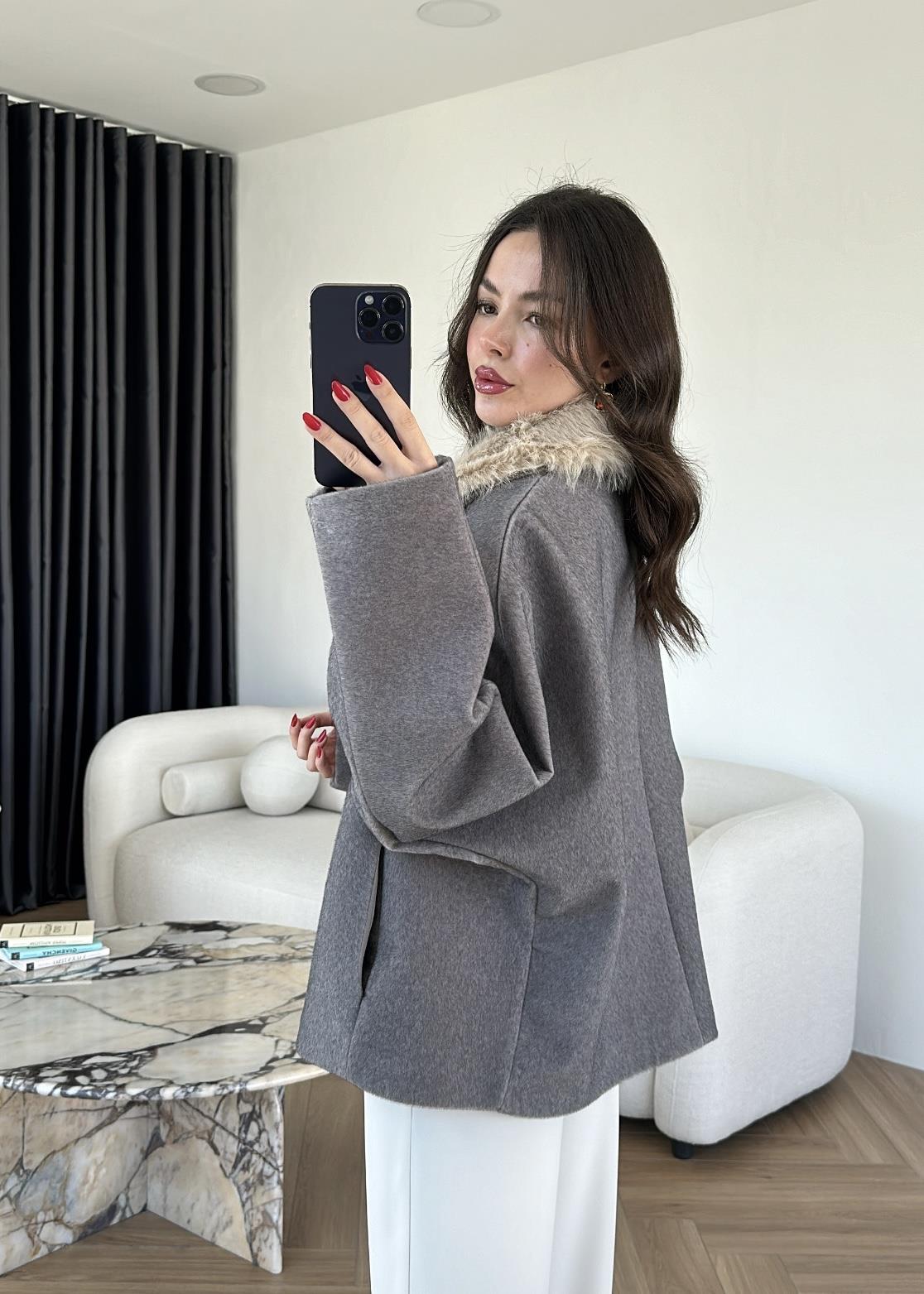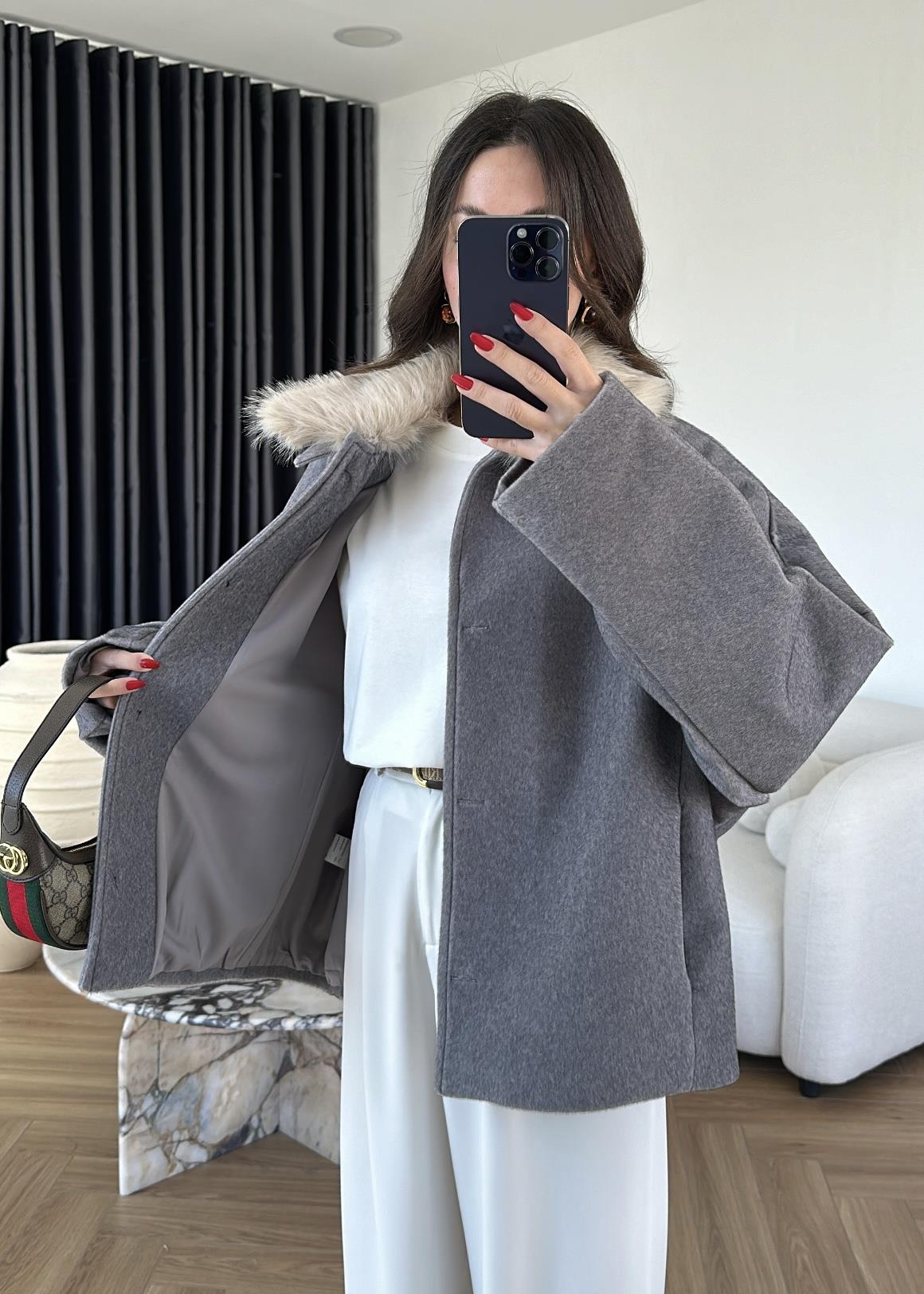 Kaşe Çıkarılabilir Kürklü Kaban GRİ