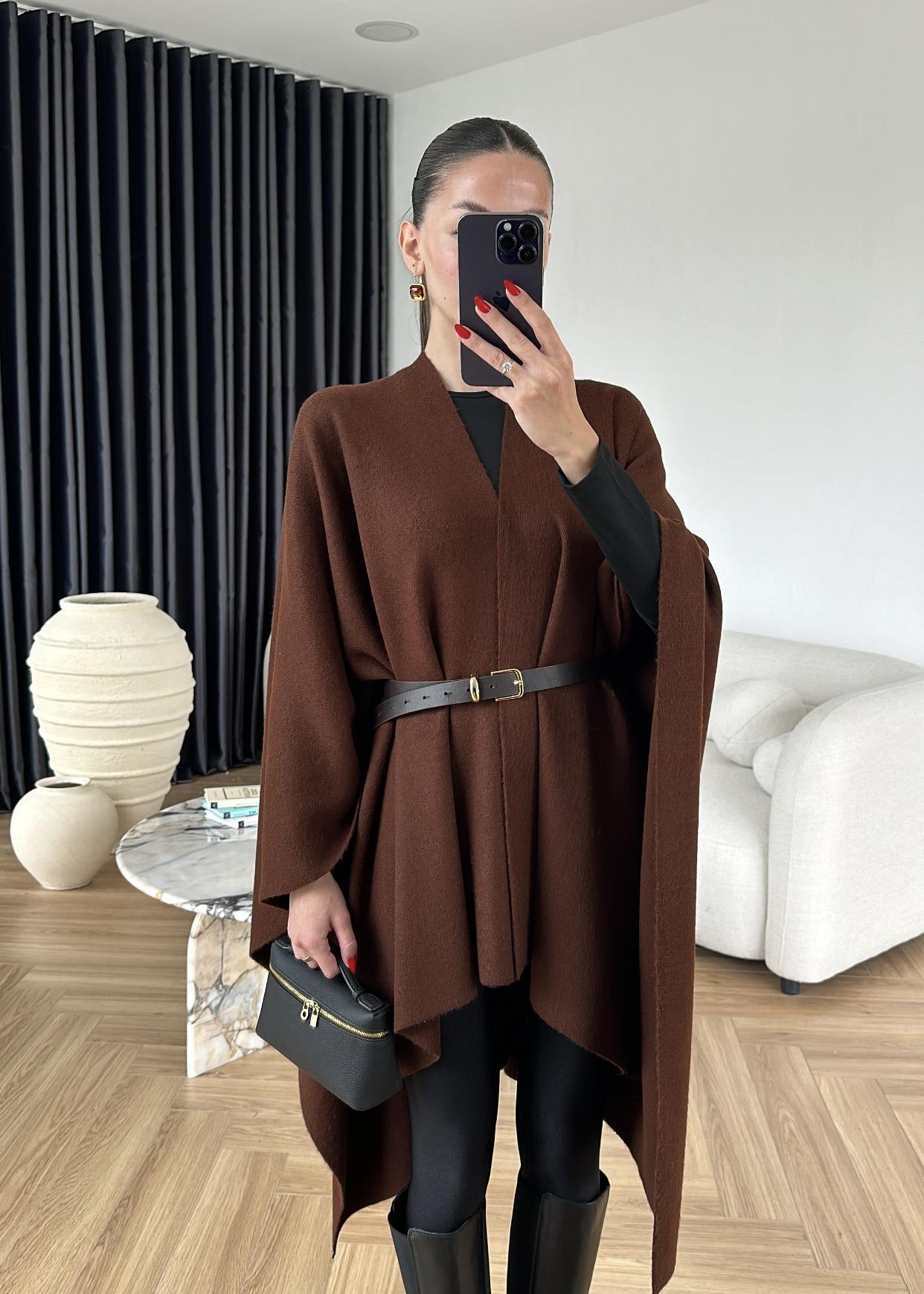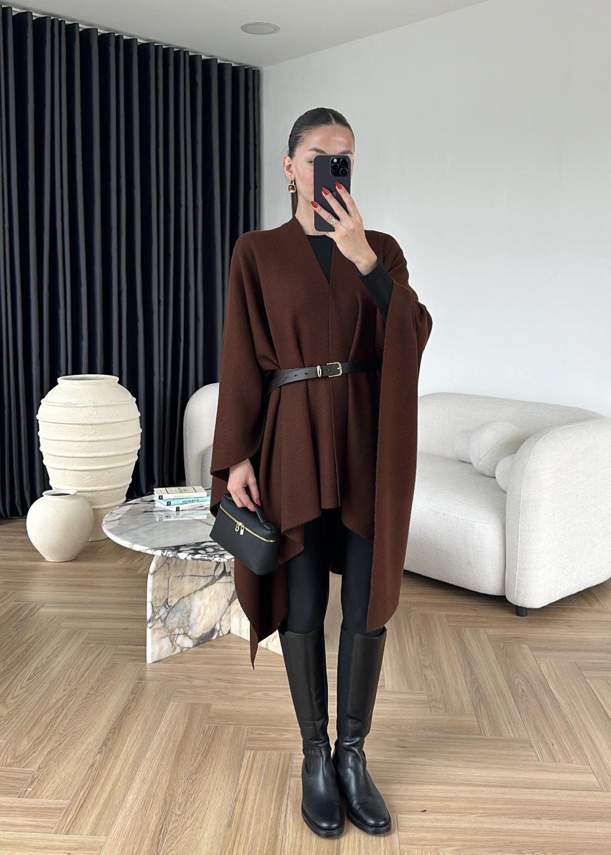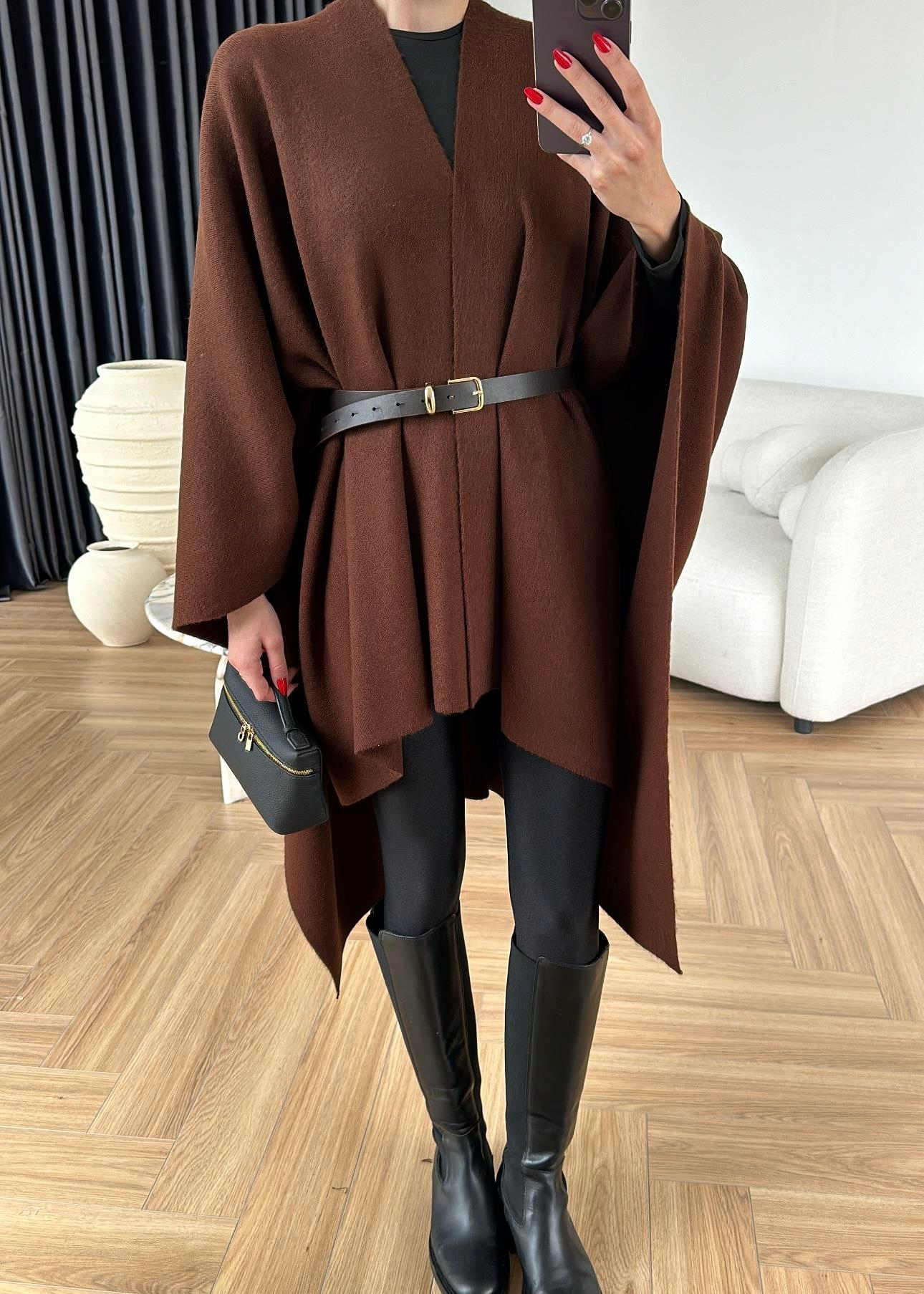 Kemerli Şardonlu Triko Hırka ACI KAHVE