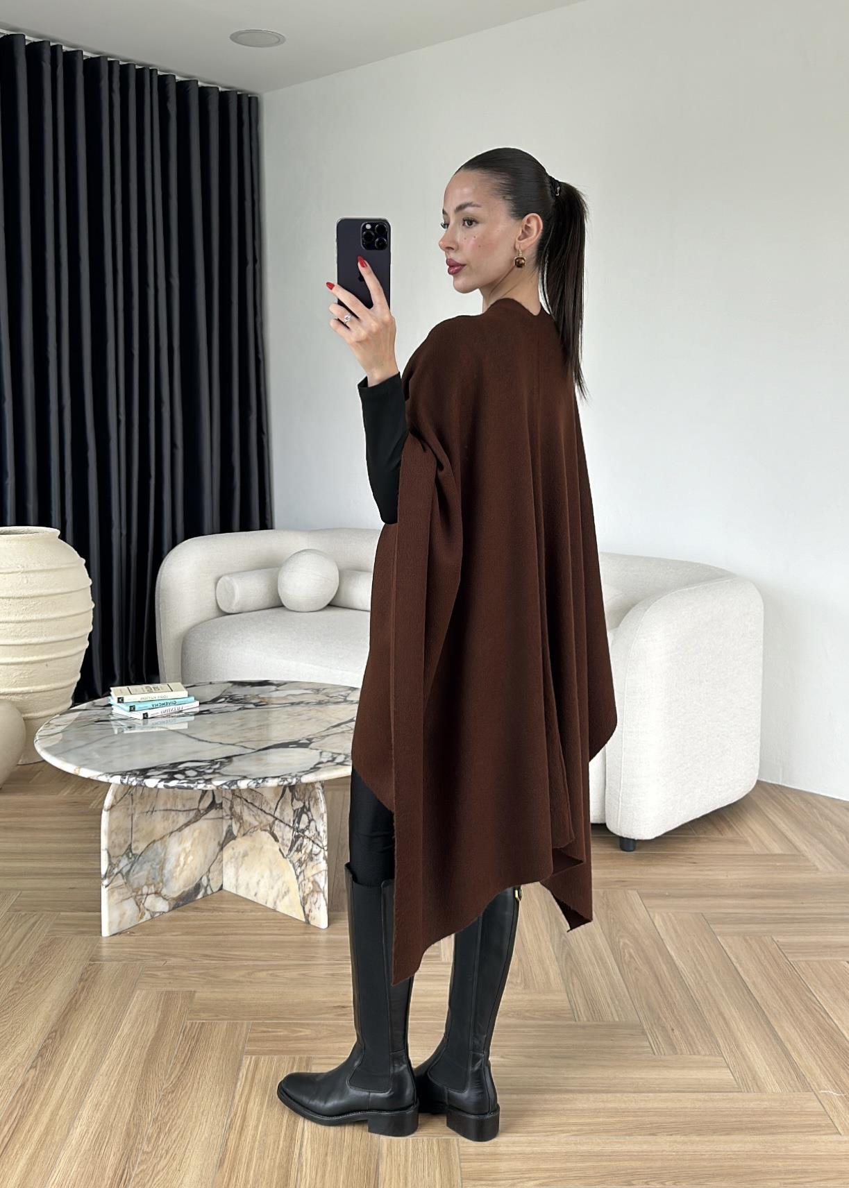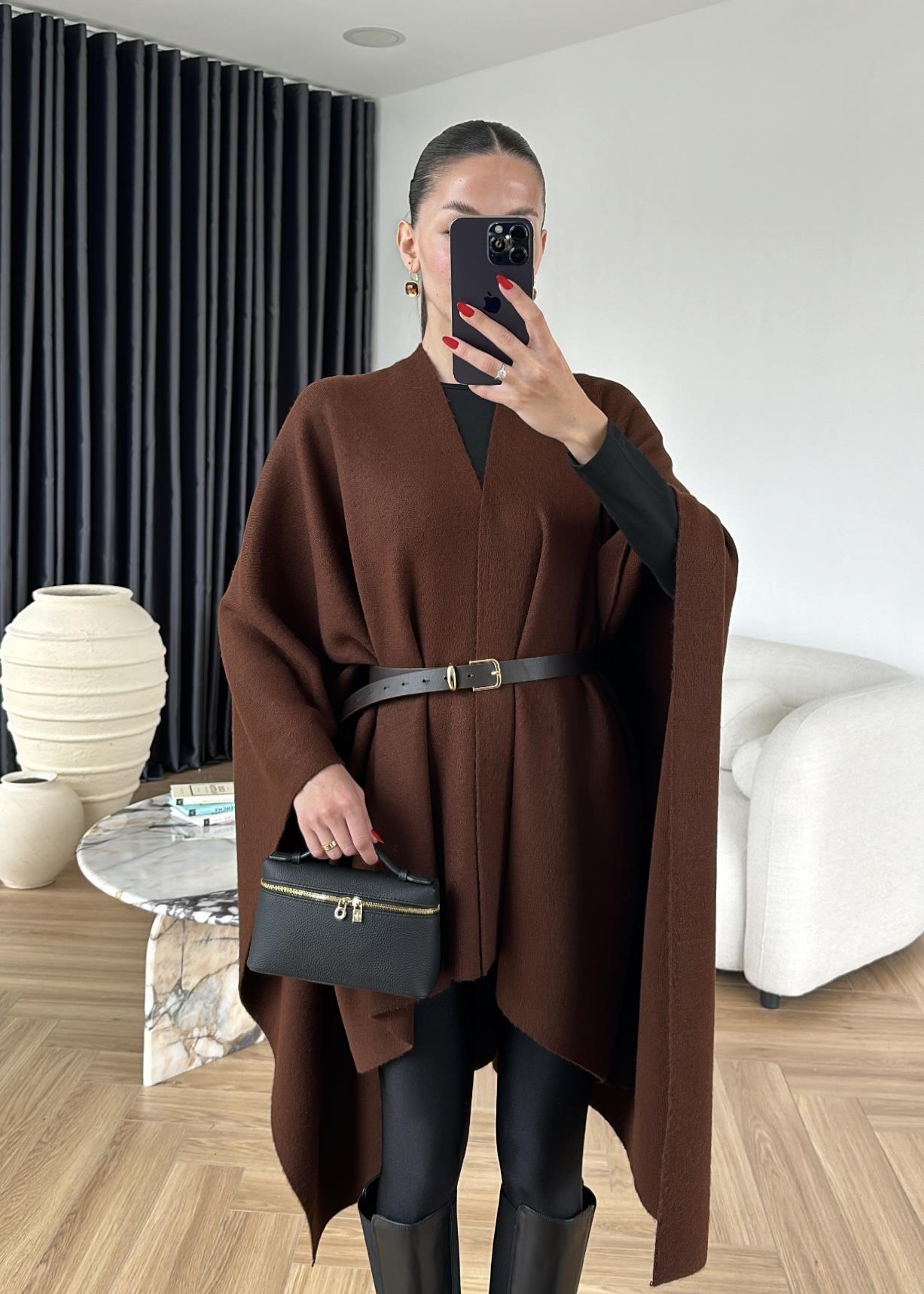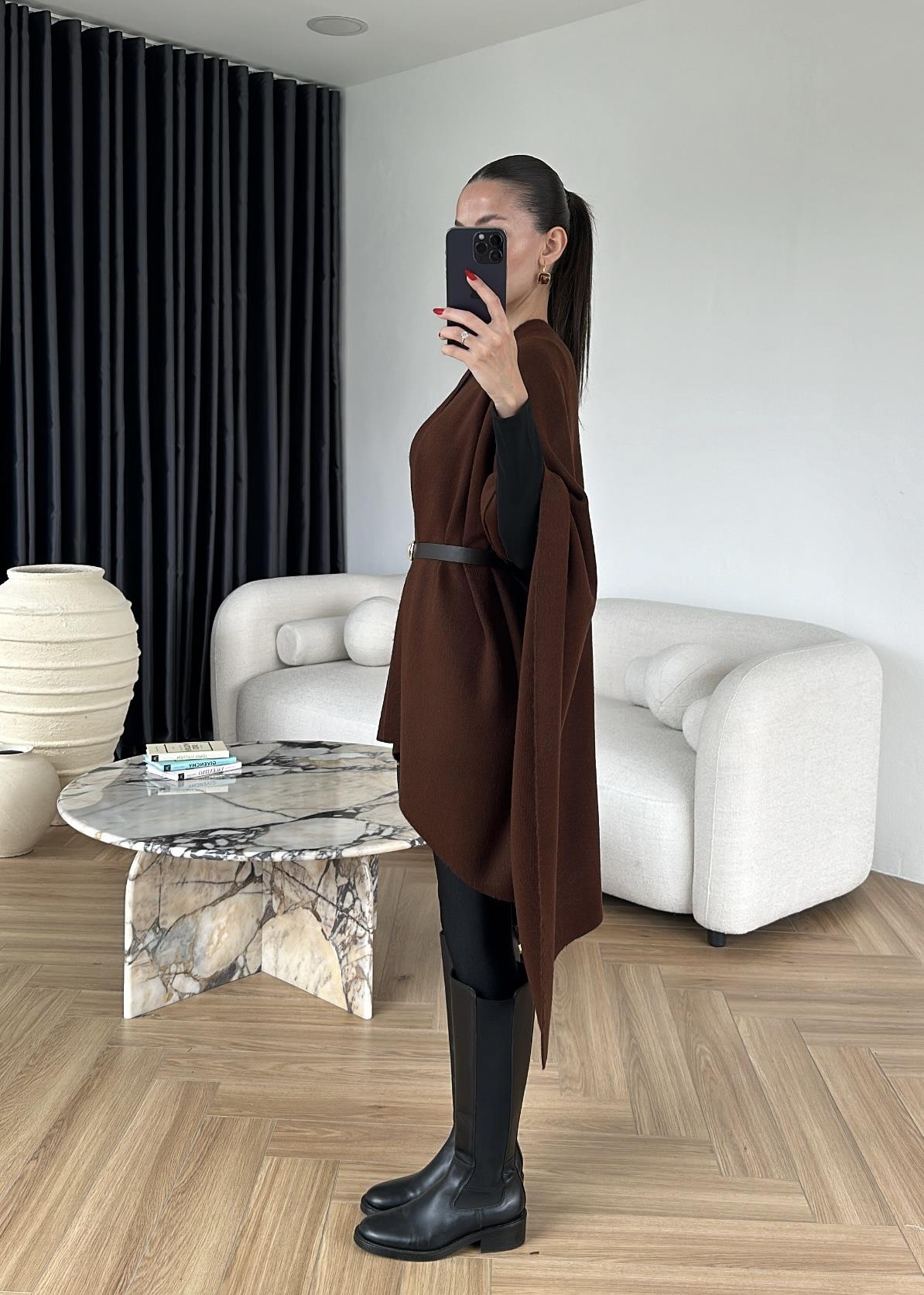 Kemerli Şardonlu Triko Hırka ACI KAHVE