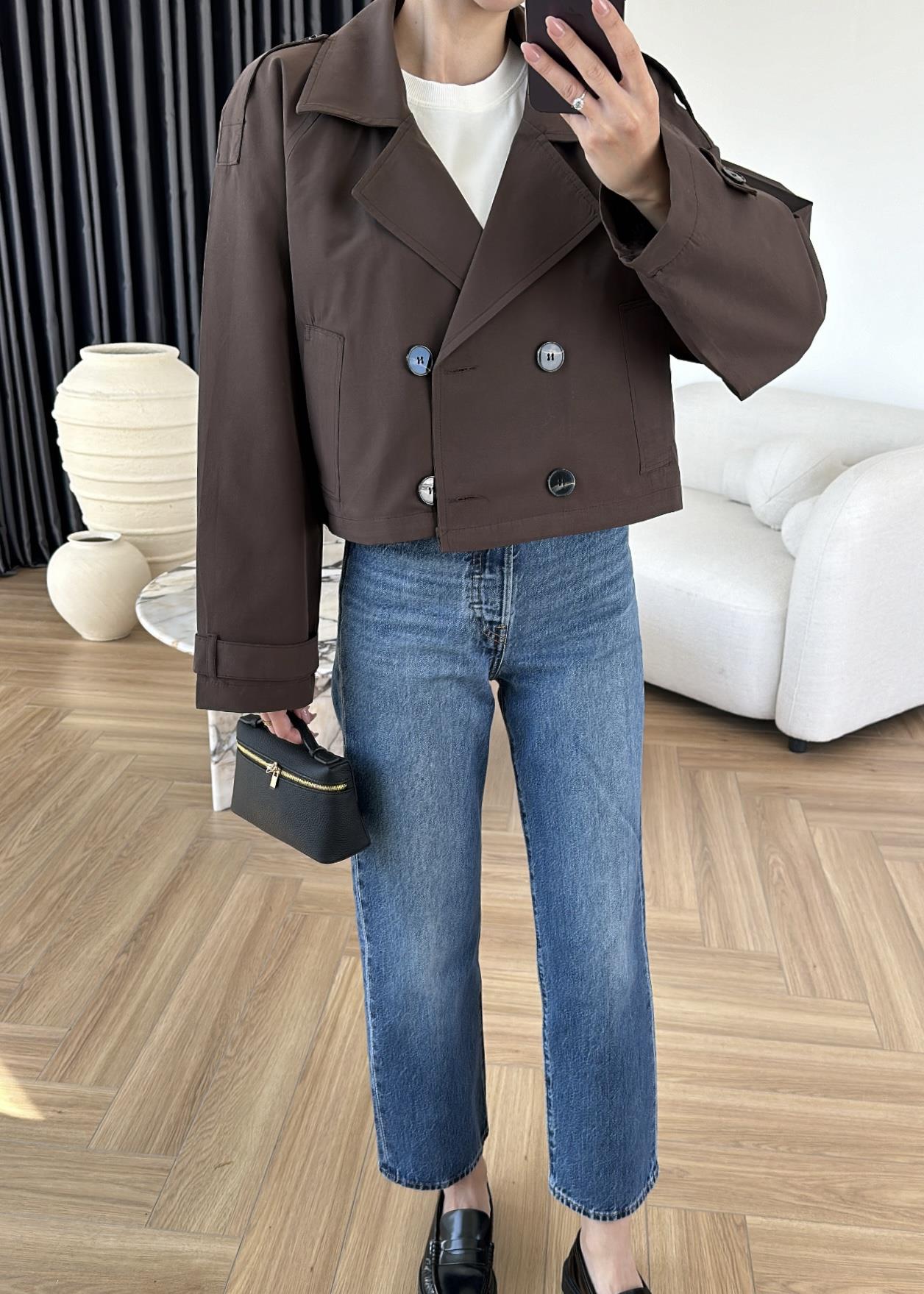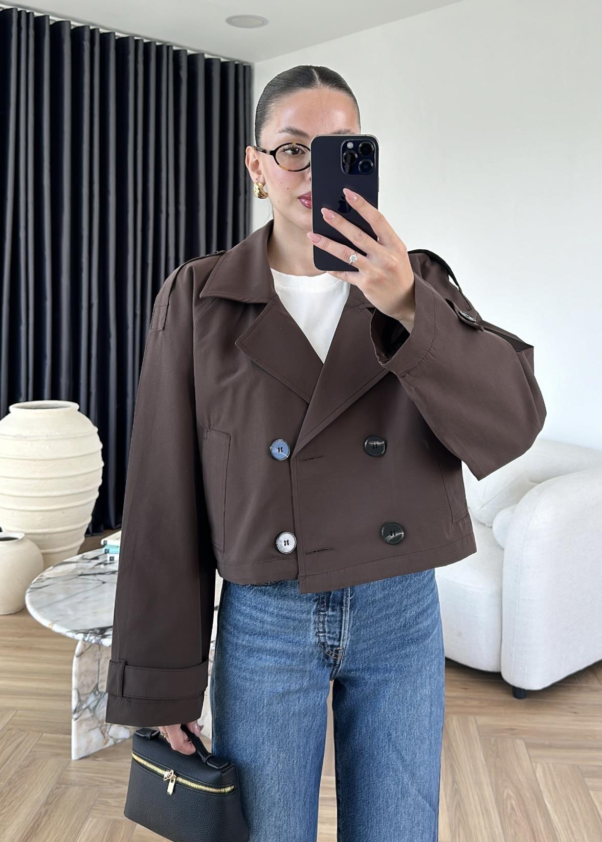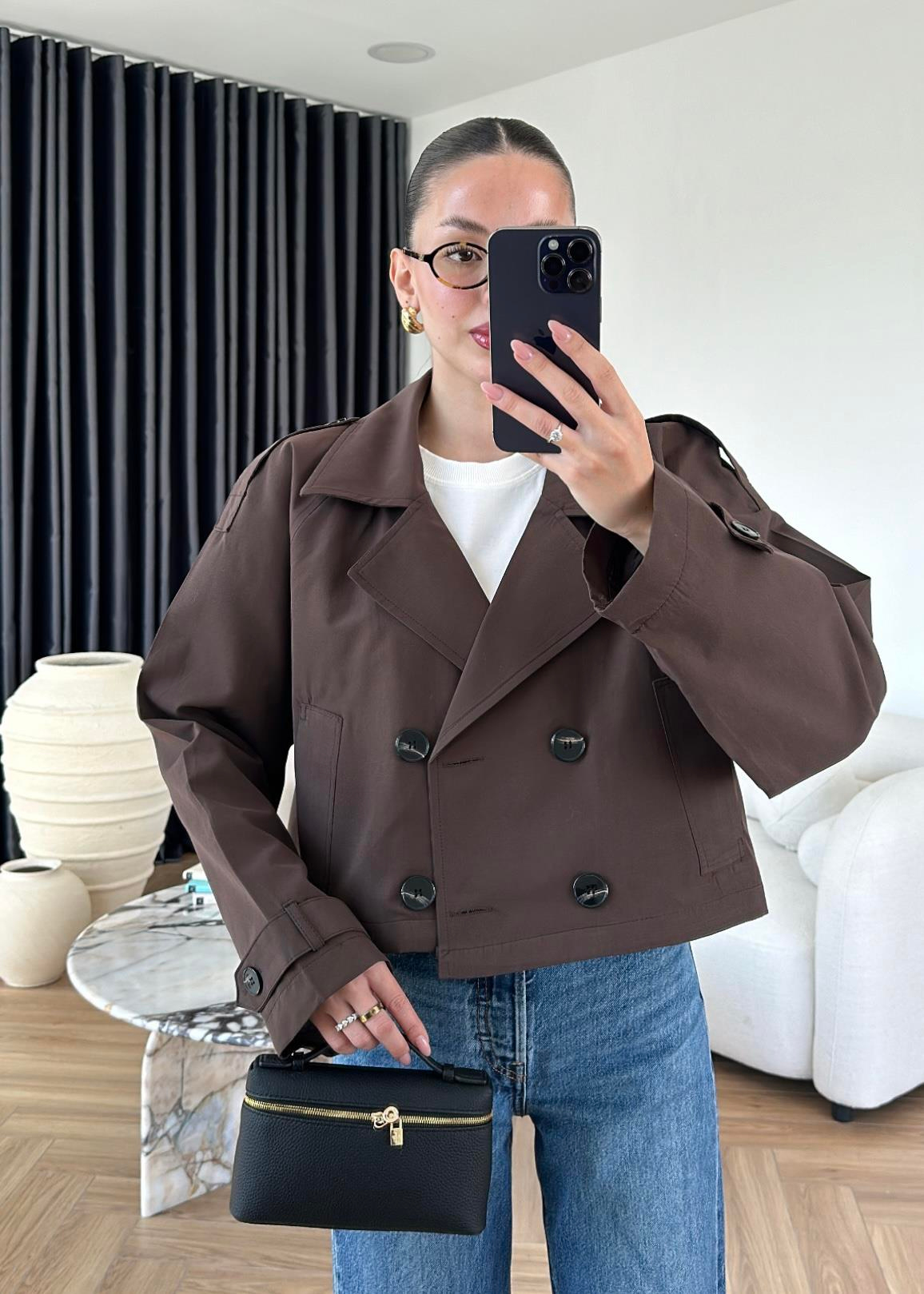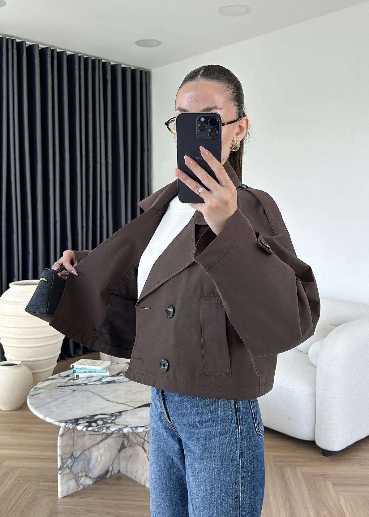 Kruvaze Crop Trençkot ACI KAHVE