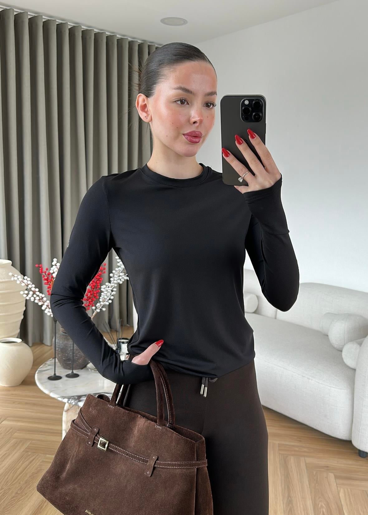 Parmak Geçirmeli Spor Bluz SİYAH Parmak Geçirmeli Spor Bluz BEYAZ
