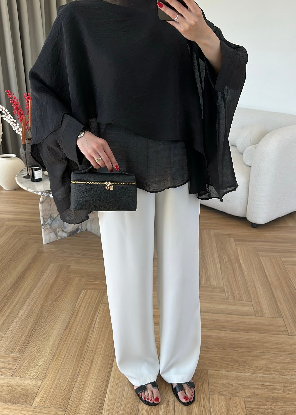 Pelerin Yakalı Transparan Bluz SİYAH (Gx4158)