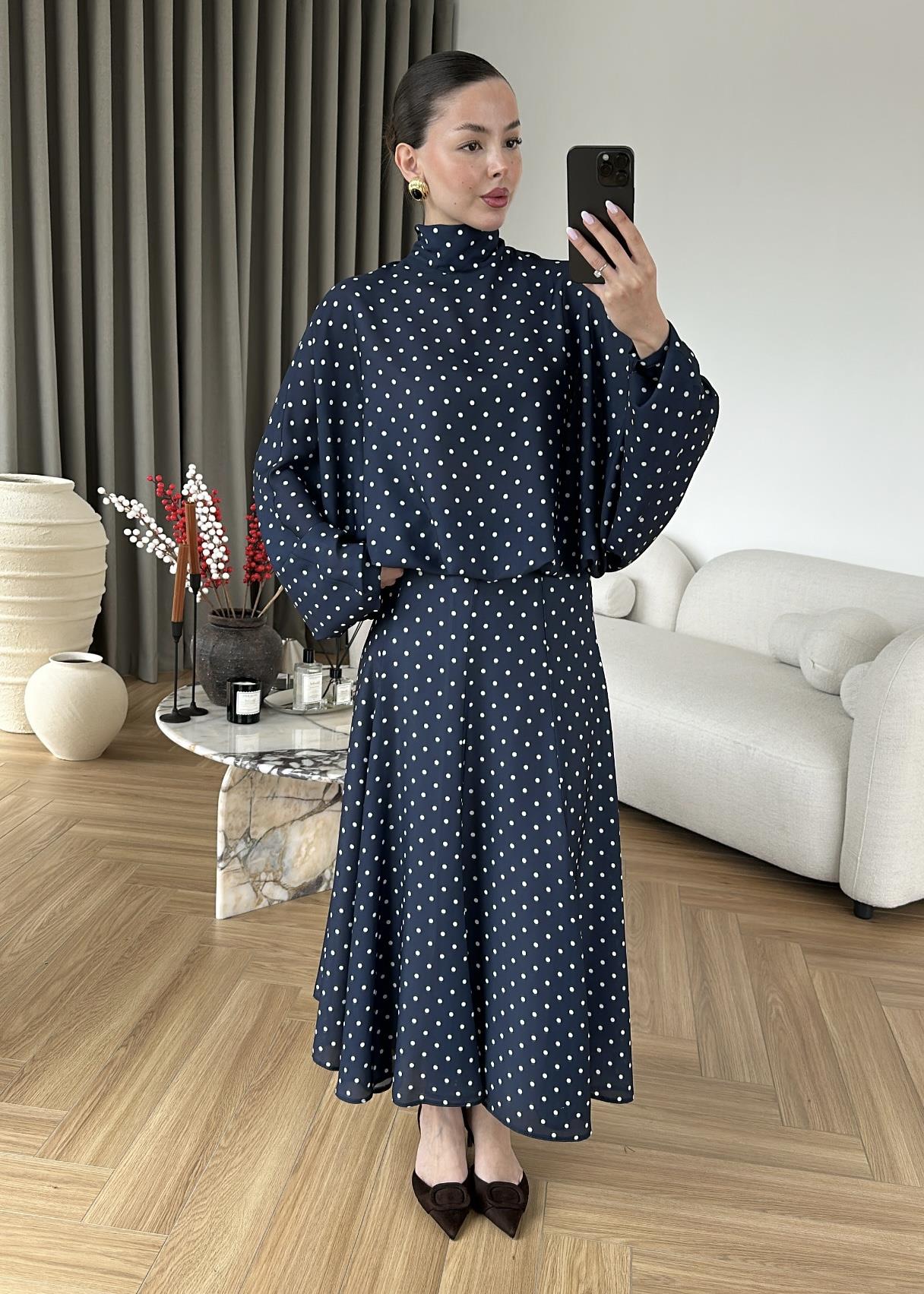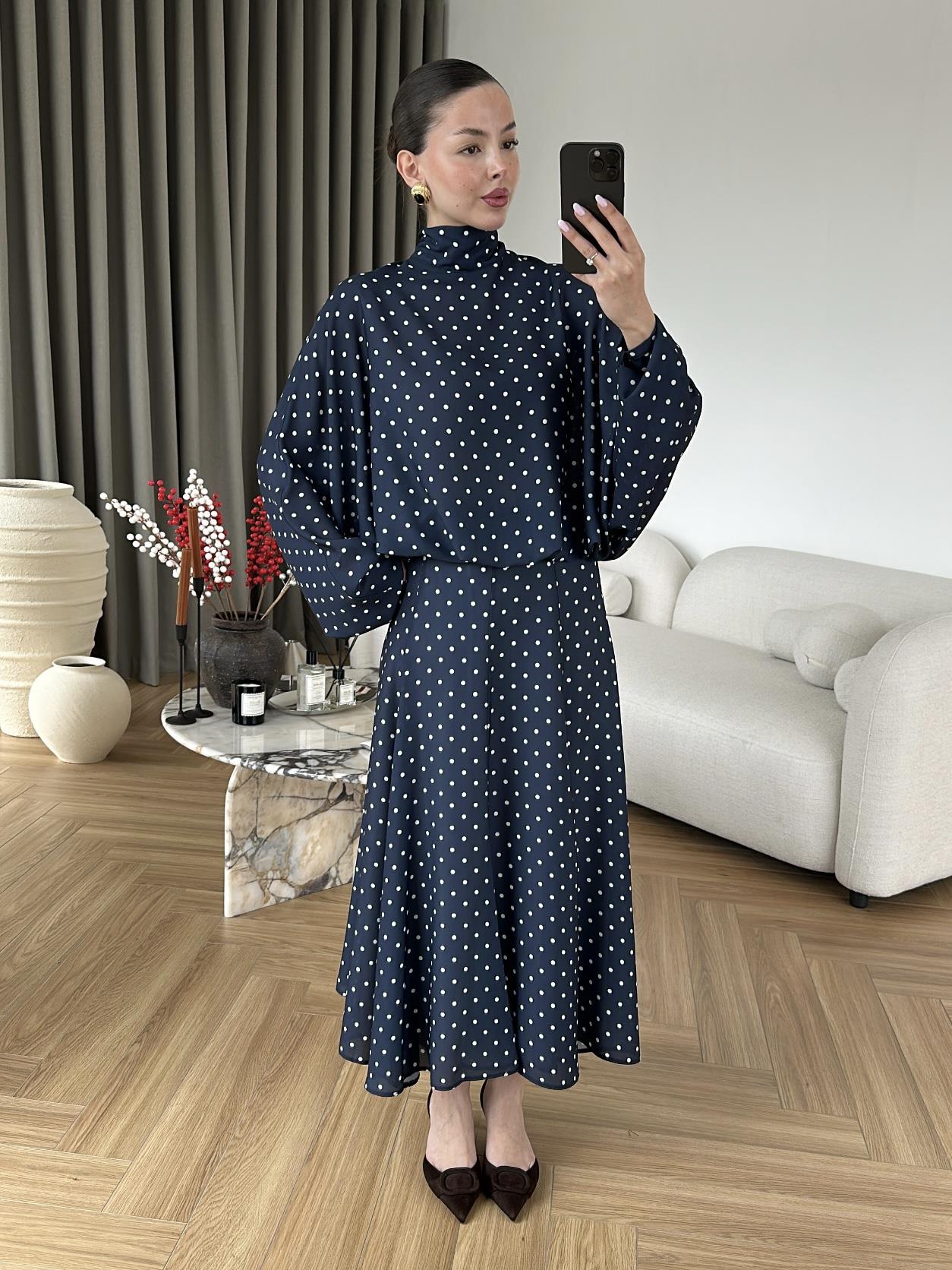 Puantiyeli Çan Etekli Takım LACİVERT (Gx4170)