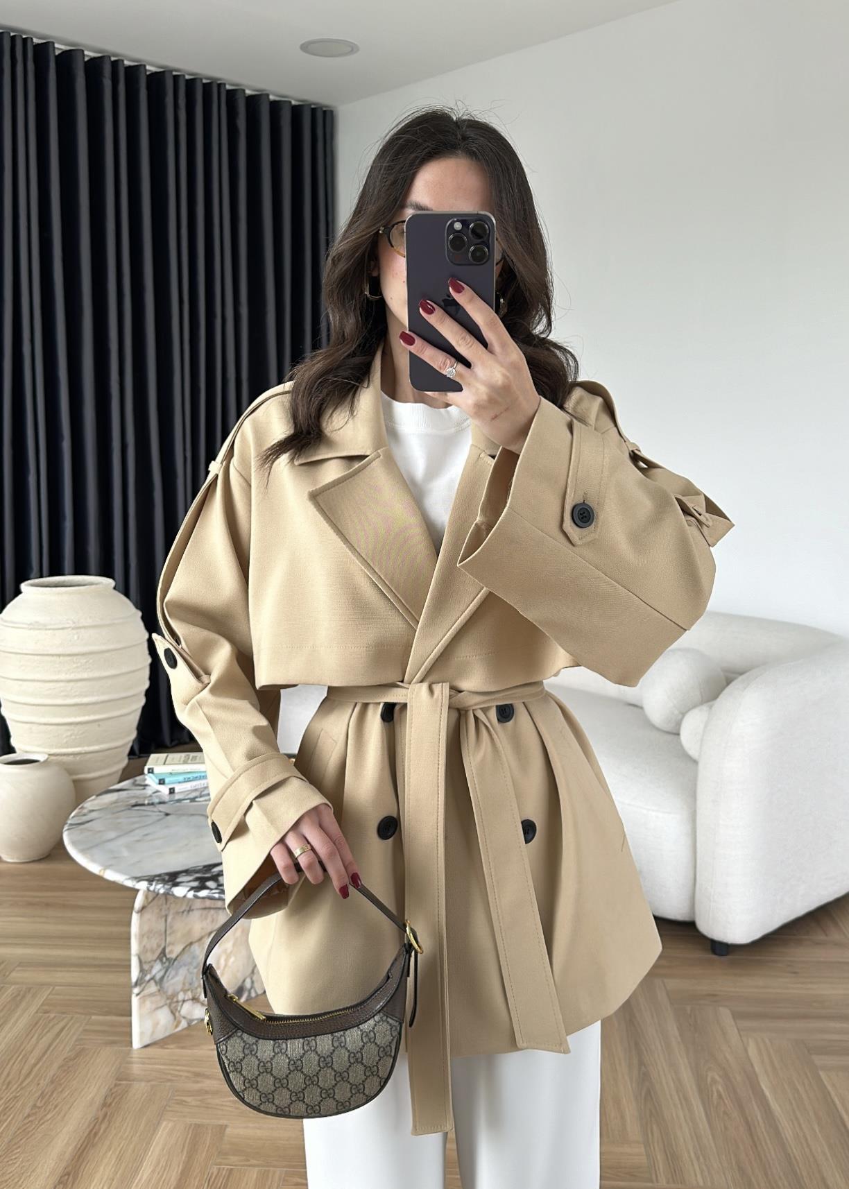 Rüzgarlıklı Ara Boy Trençkot BEJ