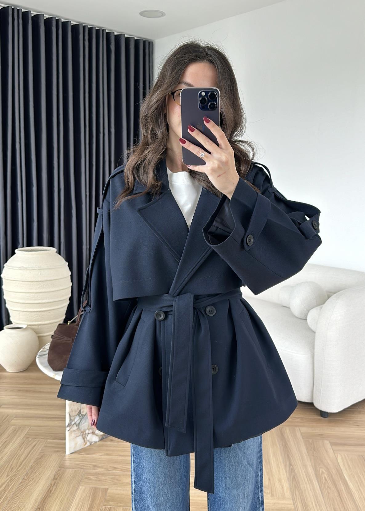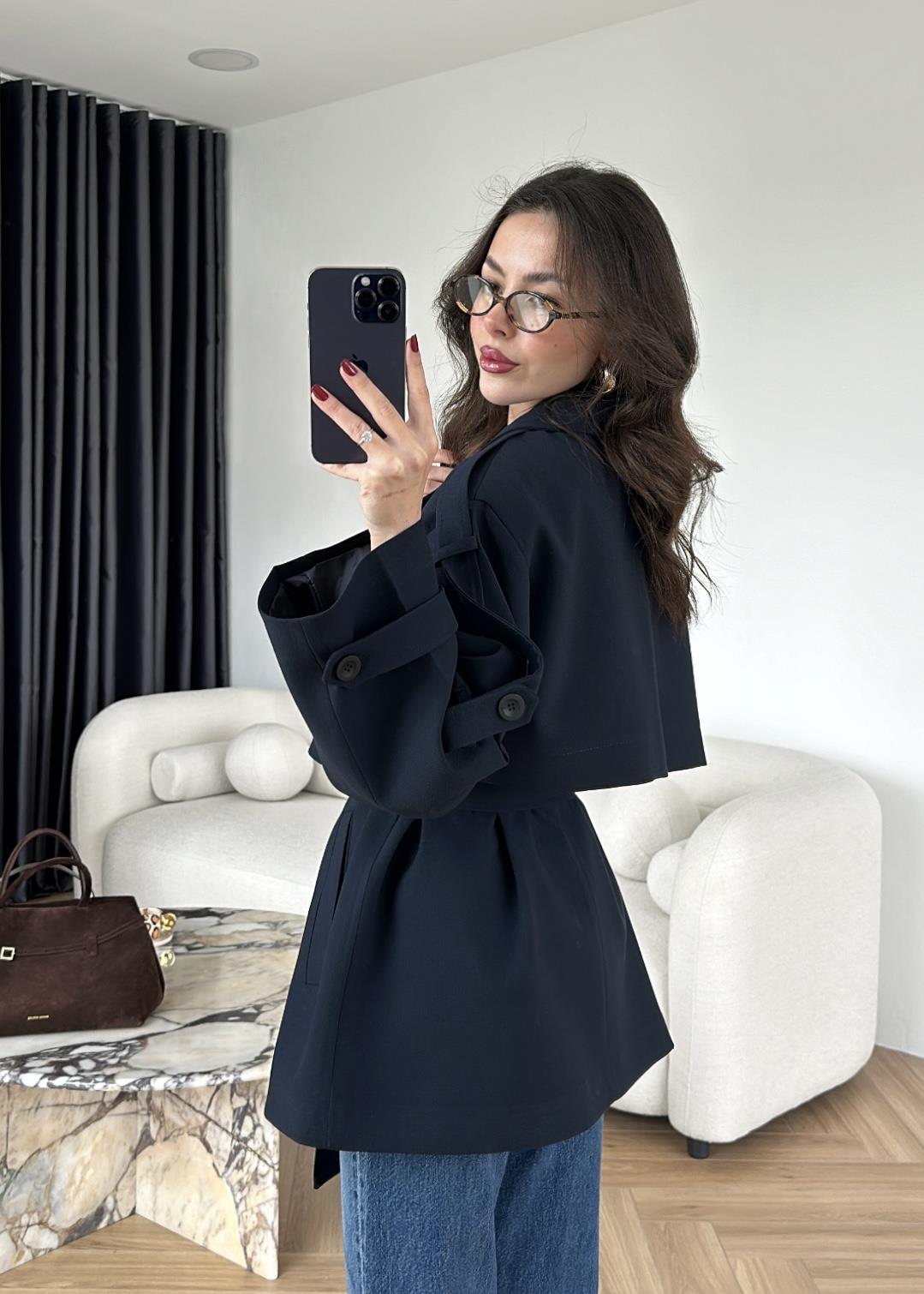 Rüzgarlıklı Ara Boy Trençkot KOYU LACİVERT