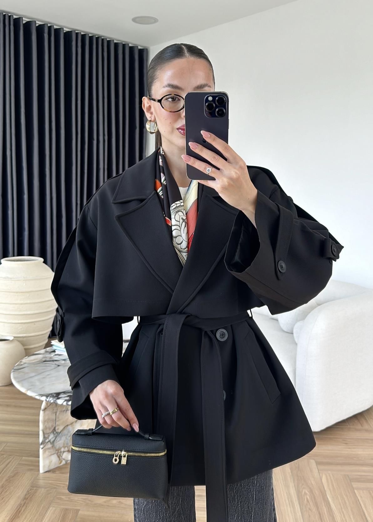 Rüzgarlıklı Ara Boy Trençkot SİYAH