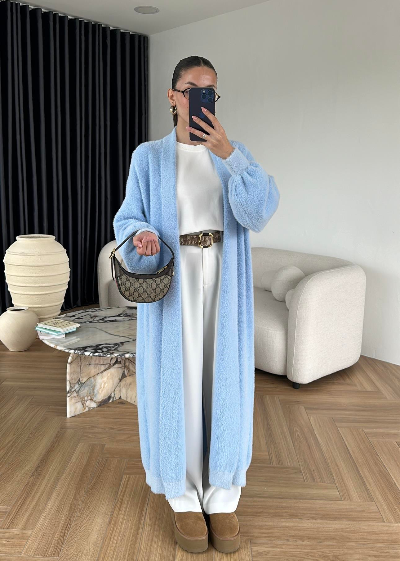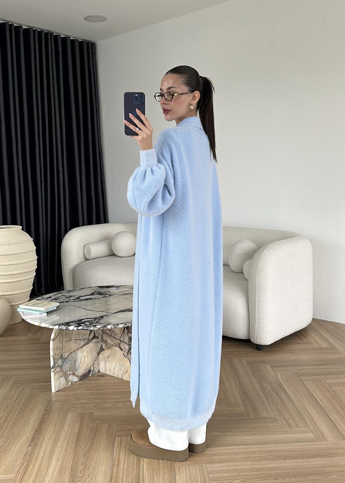 Şal Yakalı Tüylü Uzun Hırka BEBE MAVİ