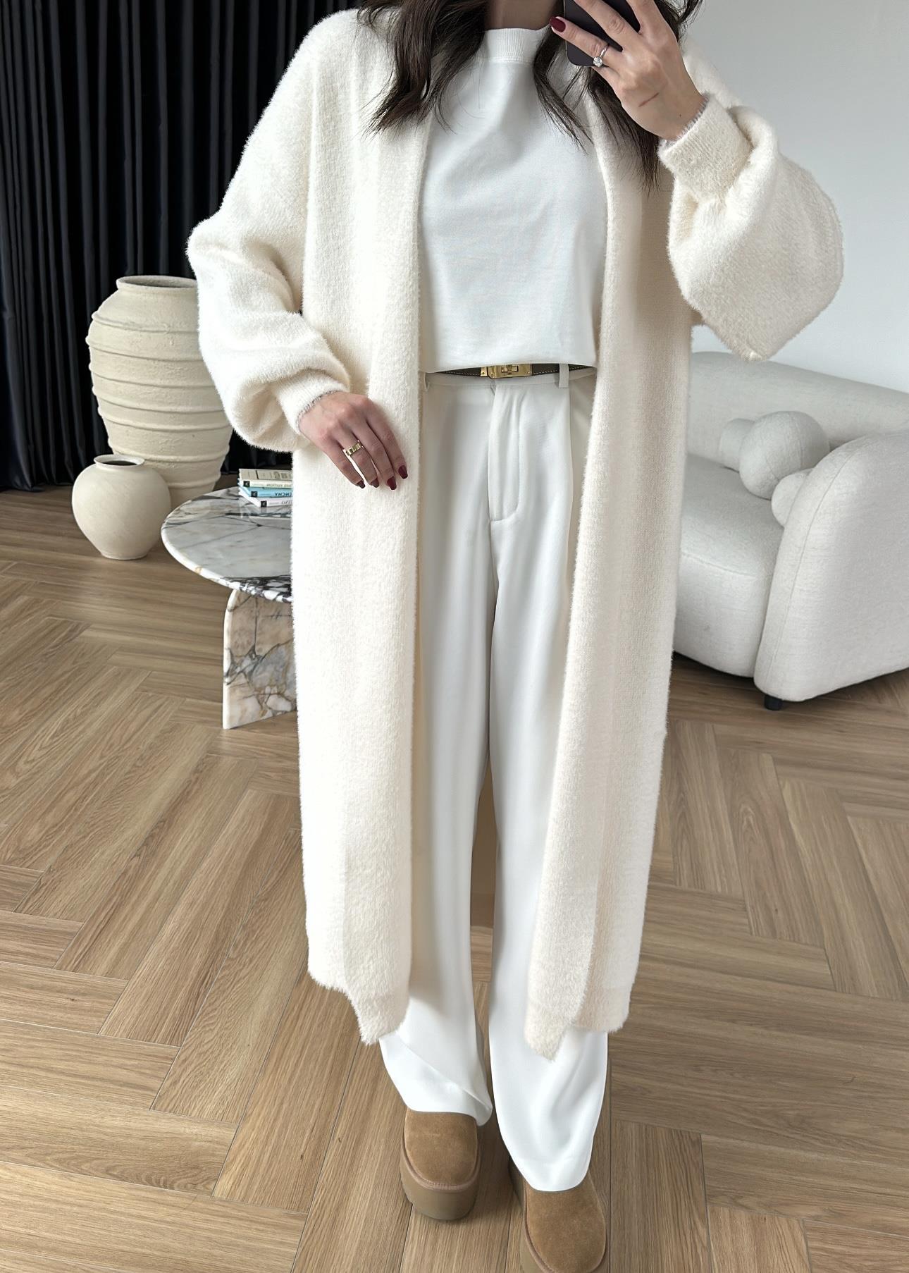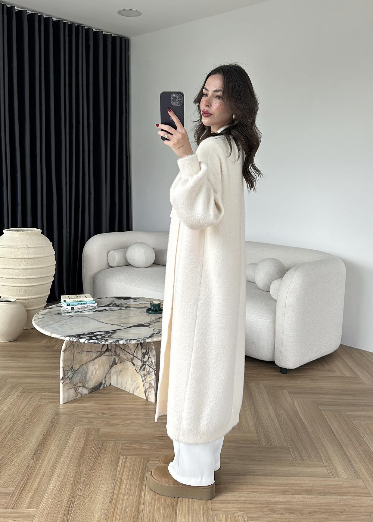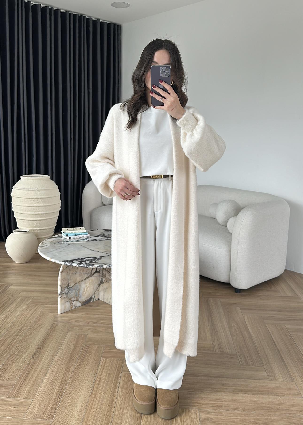 Şal Yakalı Tüylü Uzun Hırka EKRU