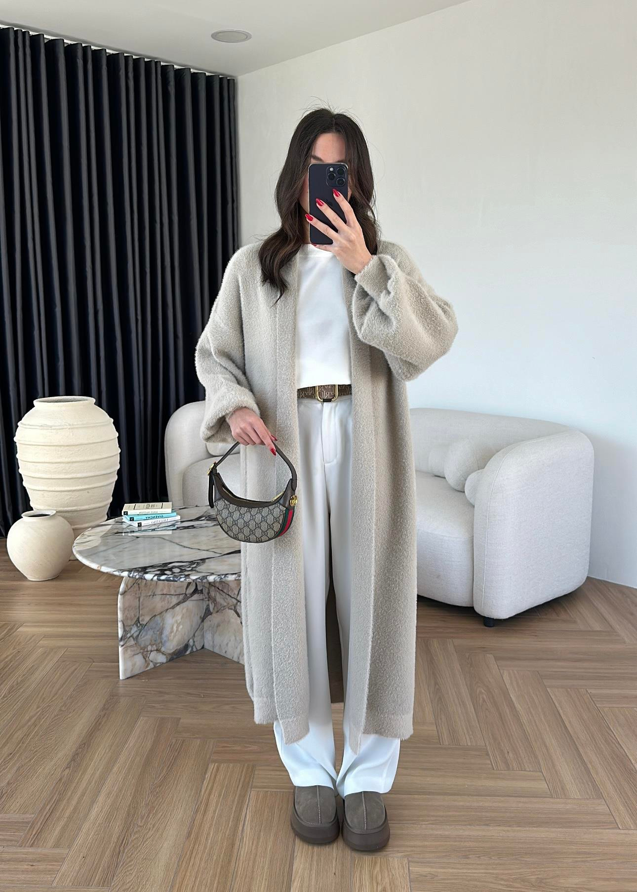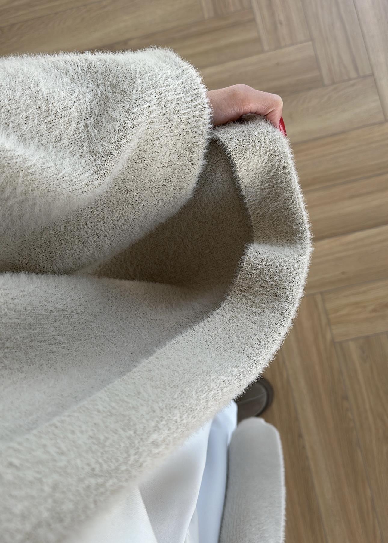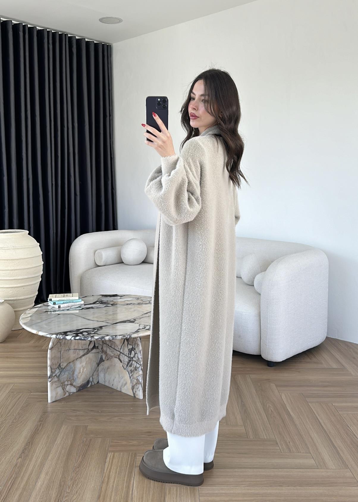 Şal Yakalı Tüylü Uzun Hırka TAŞ