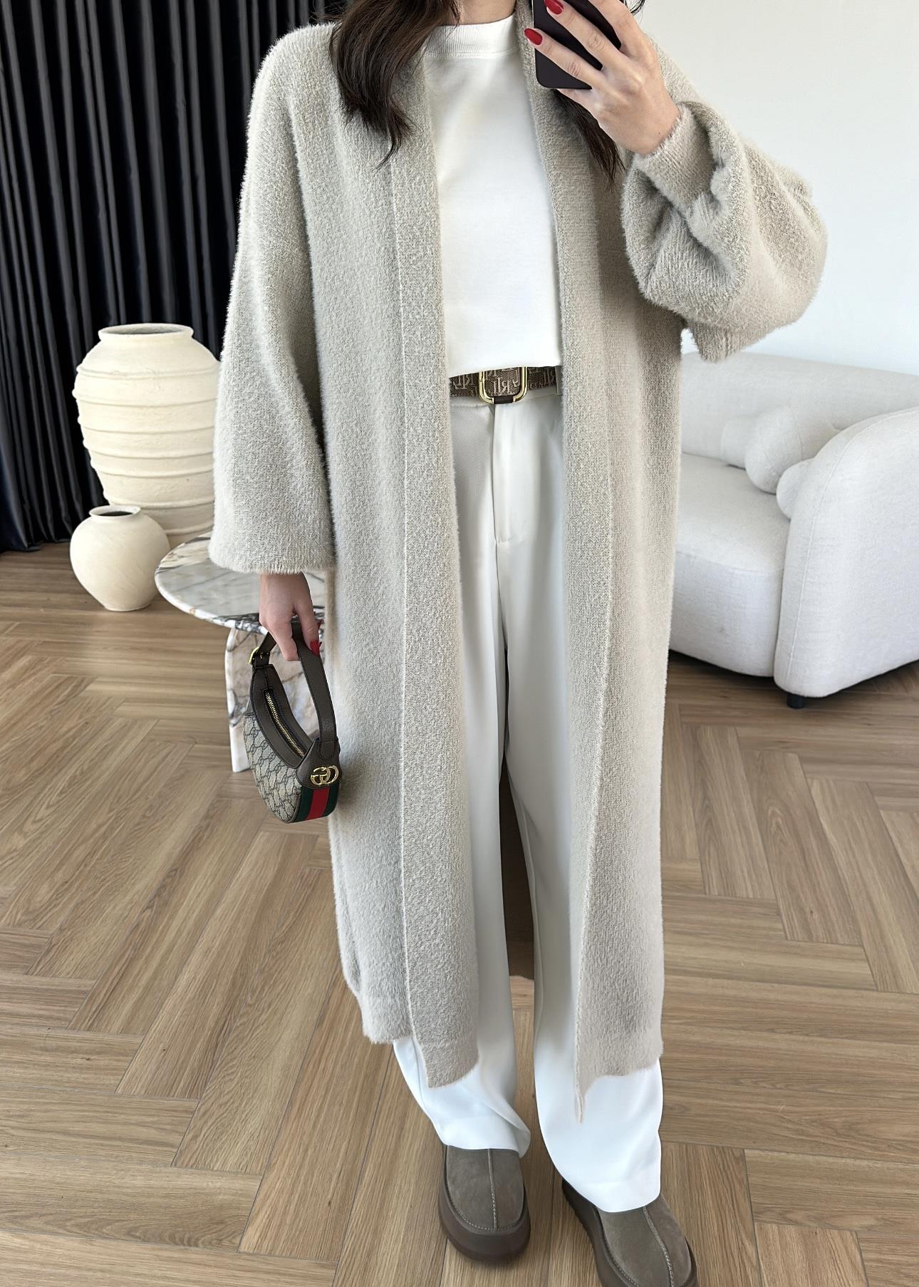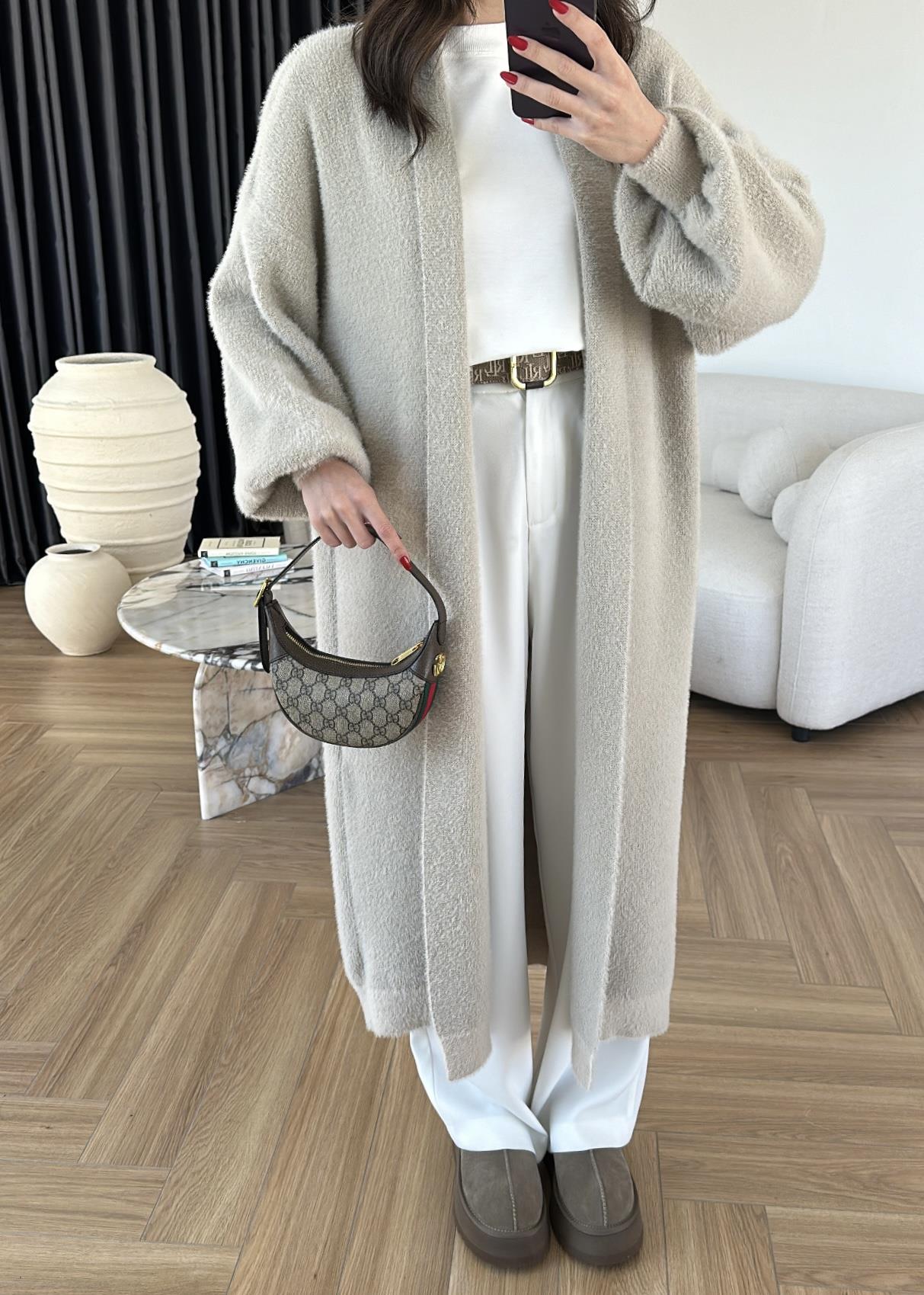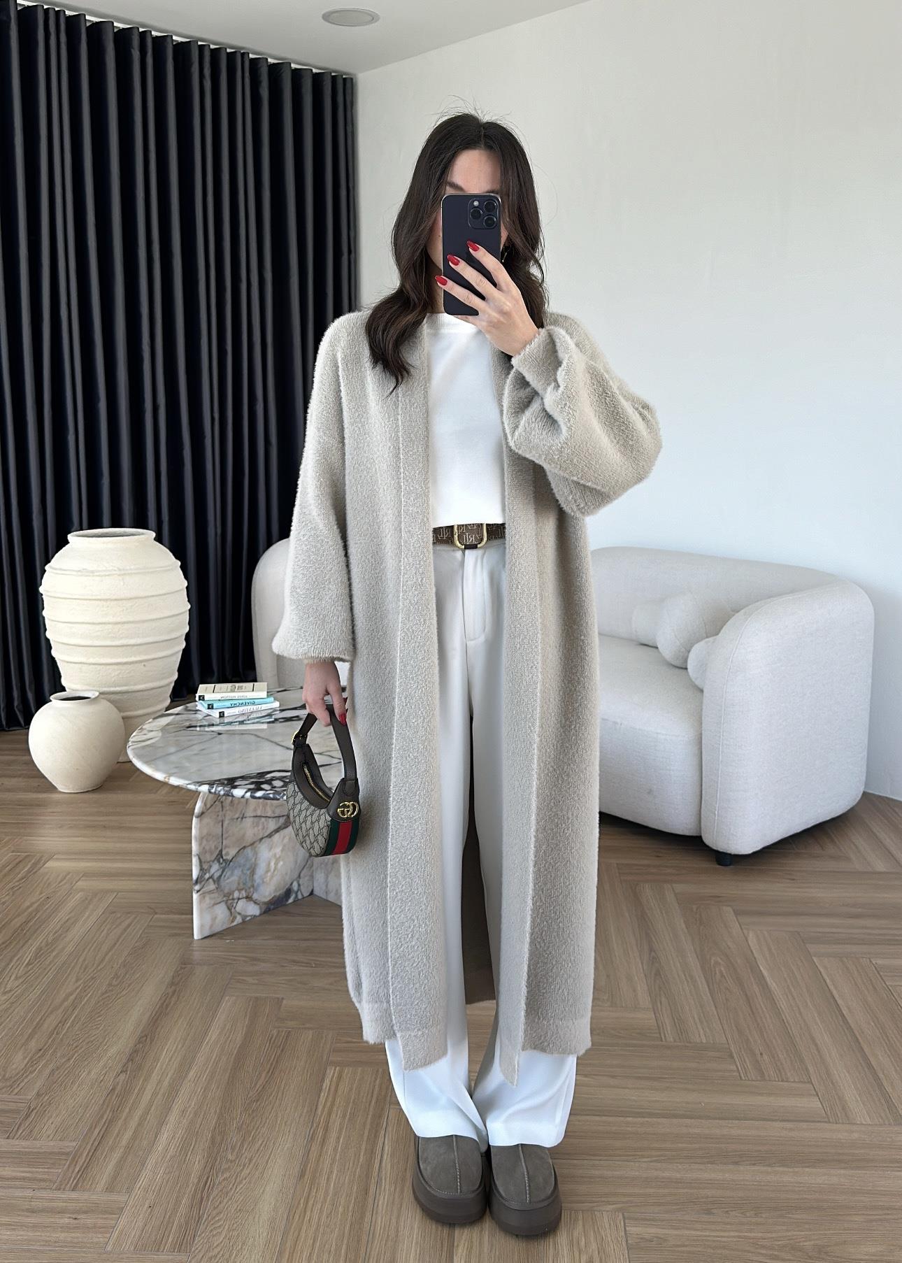 Şal Yakalı Tüylü Uzun Hırka TAŞ