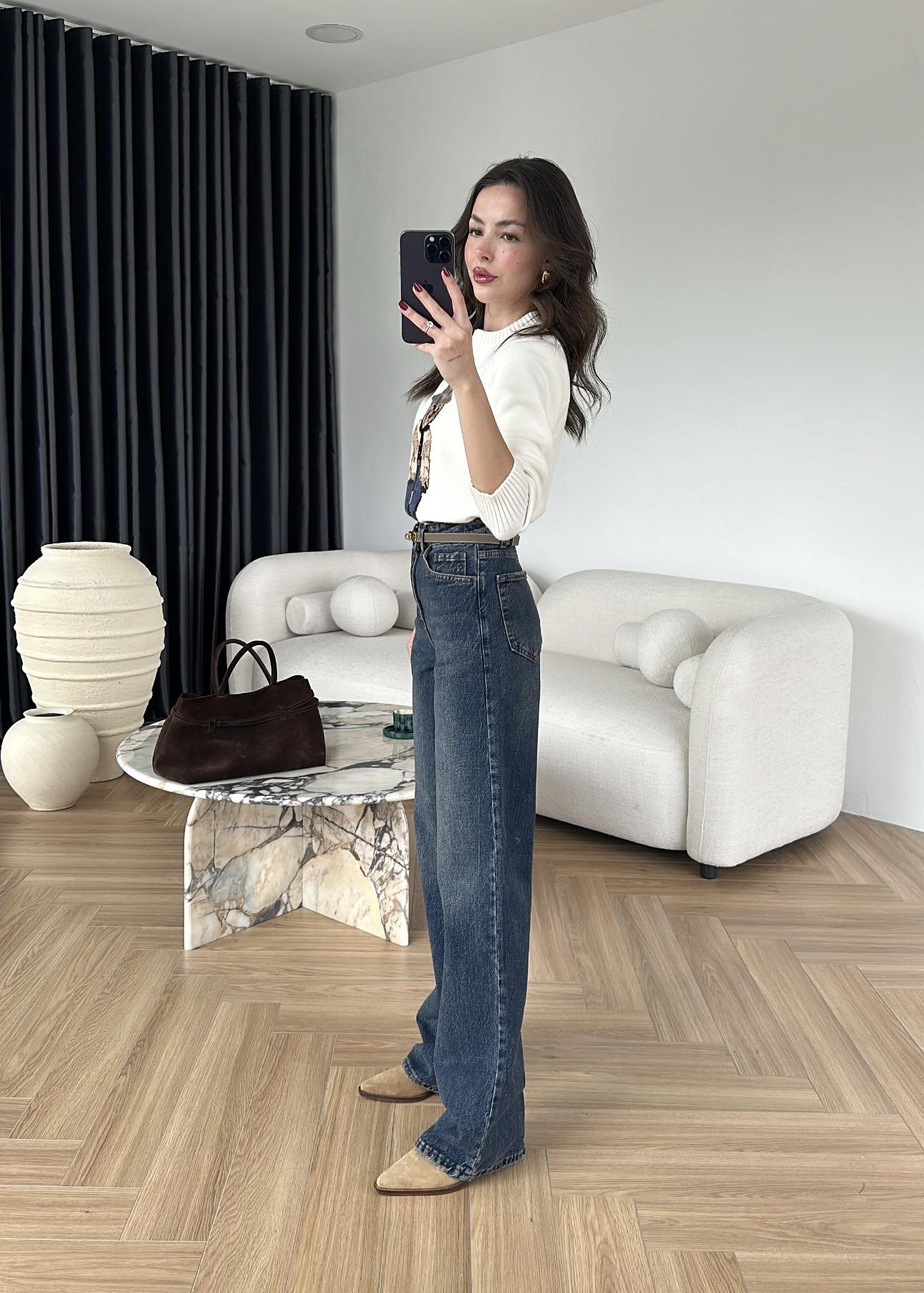 Straight Paça Dikişli Jean Orta Mavi