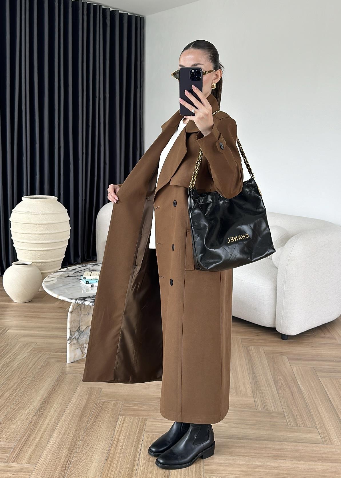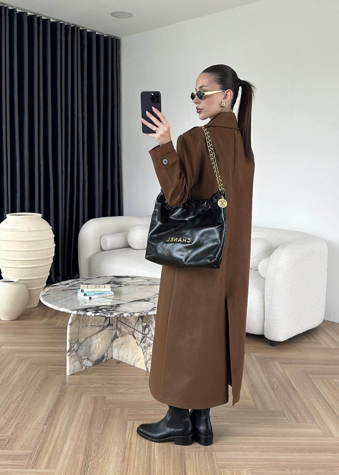 Çekimde S Beden kullanılmıştır. İki kol arası 46cm'dir.