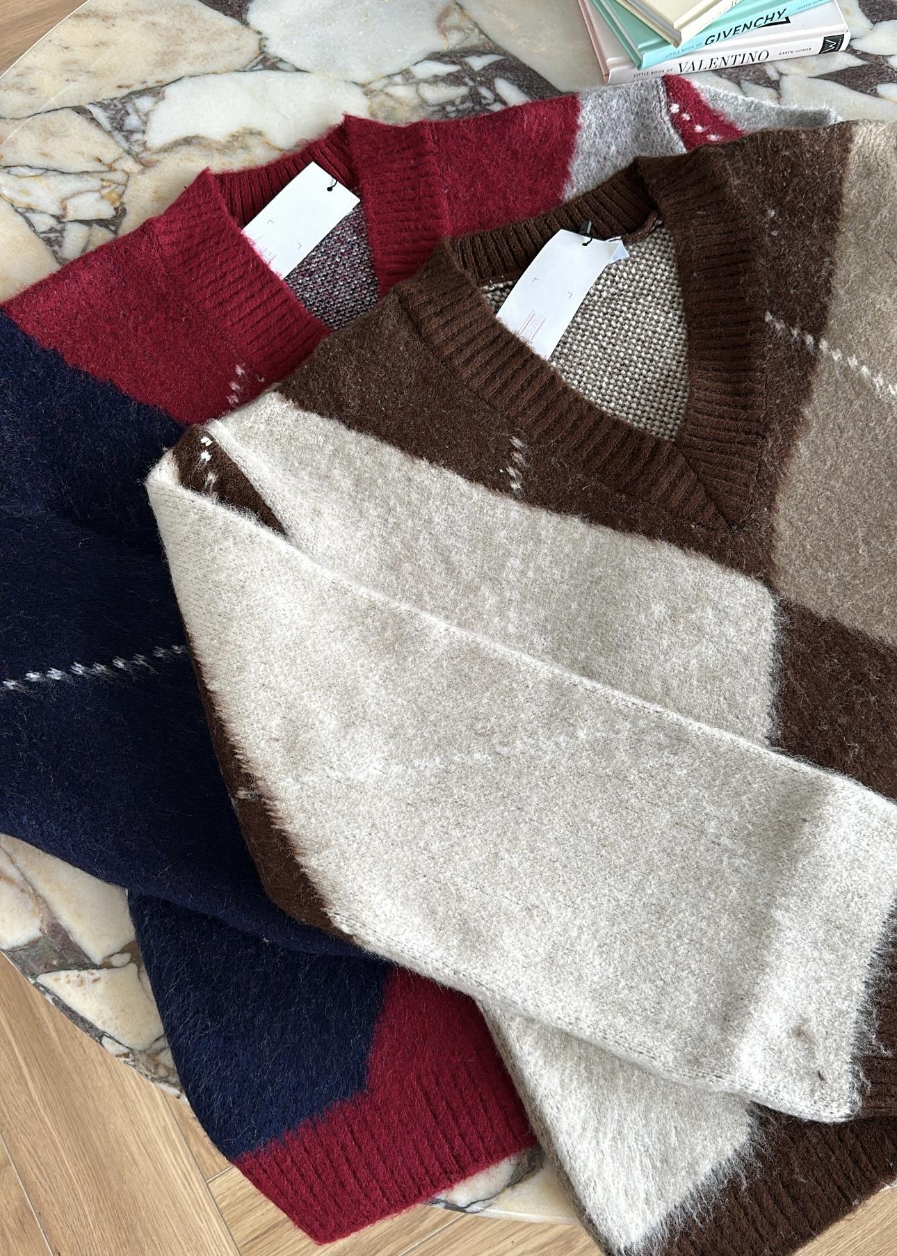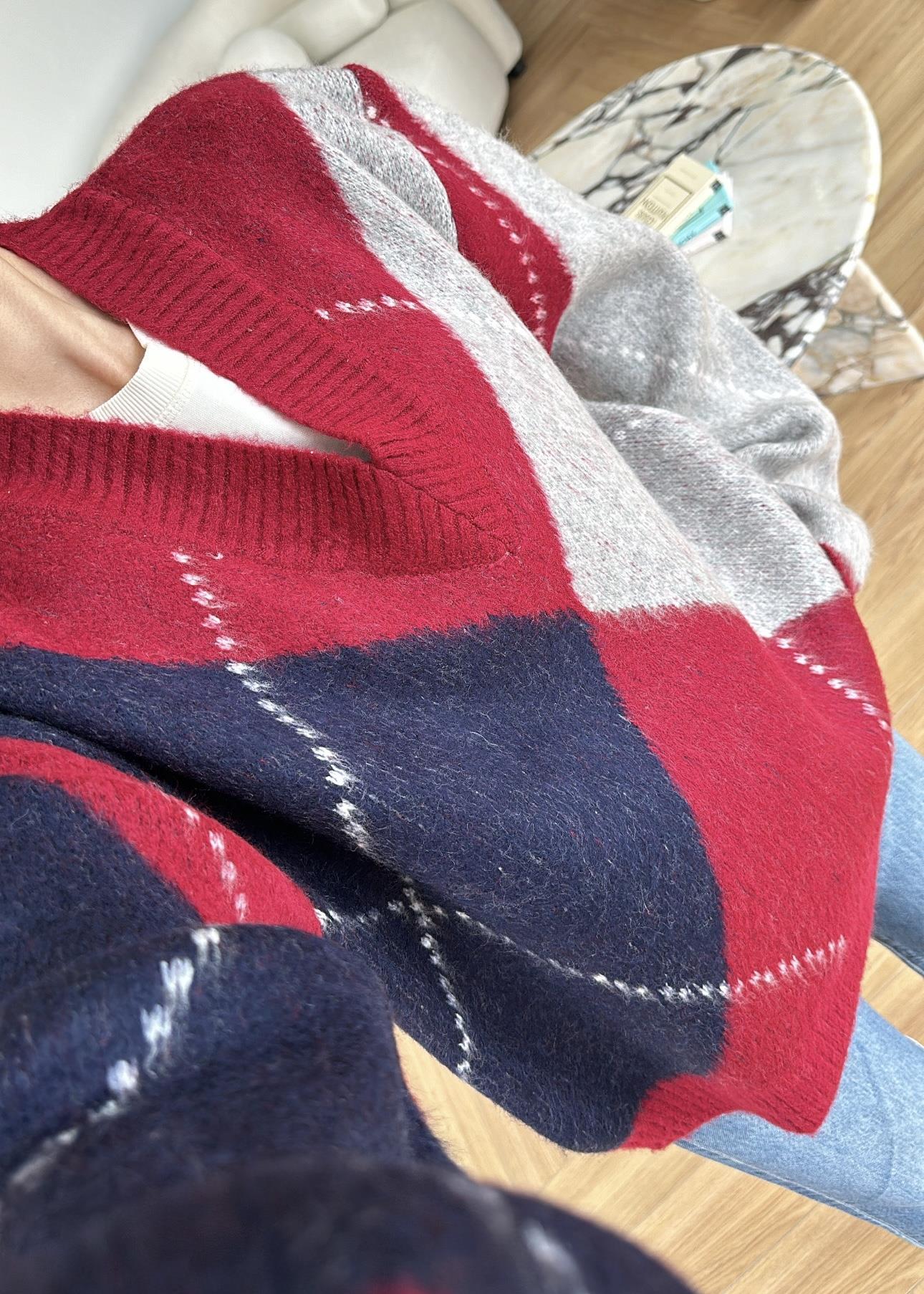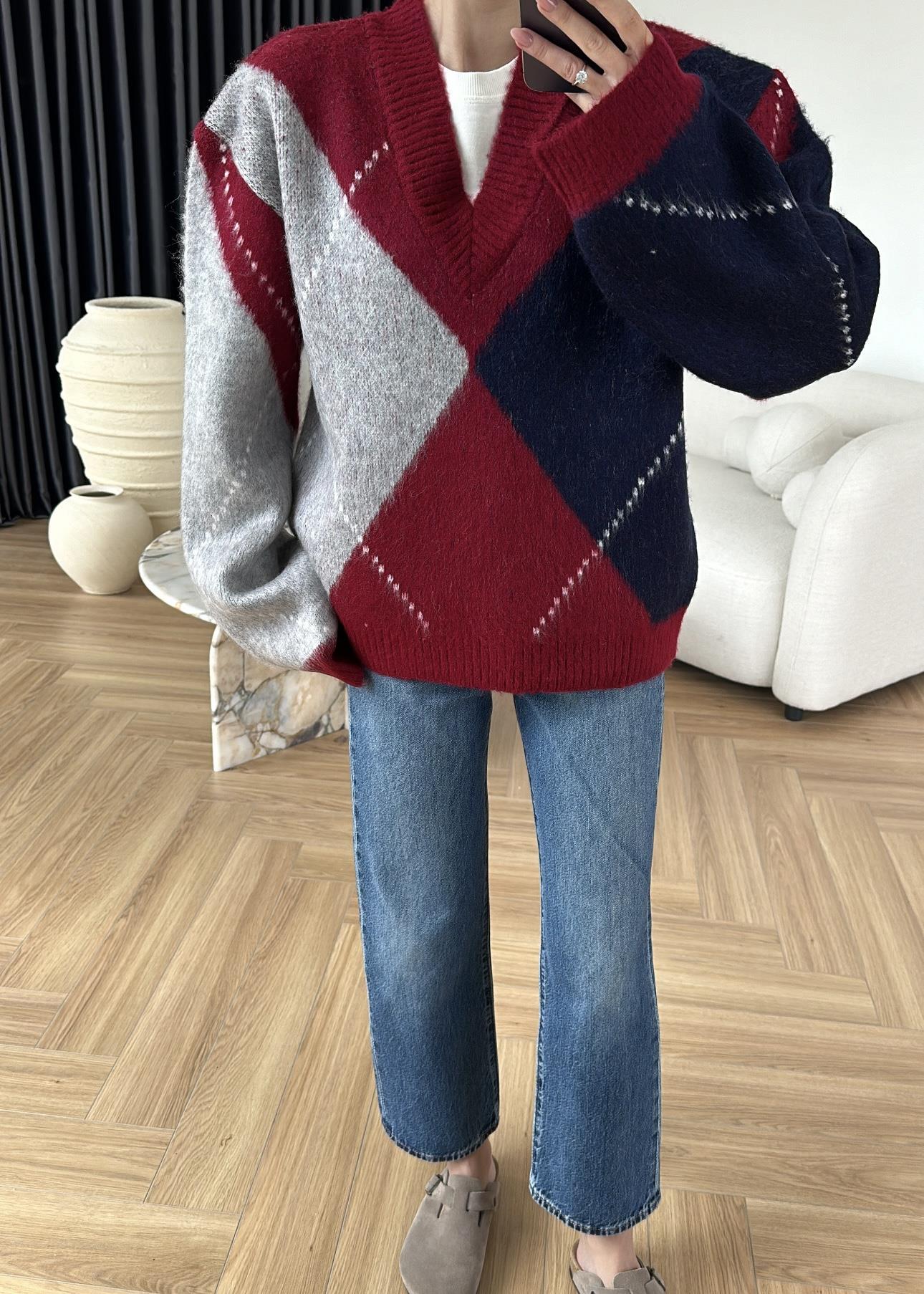 V Yakalı Geniş Baklavalı Kazak KIRMIZI