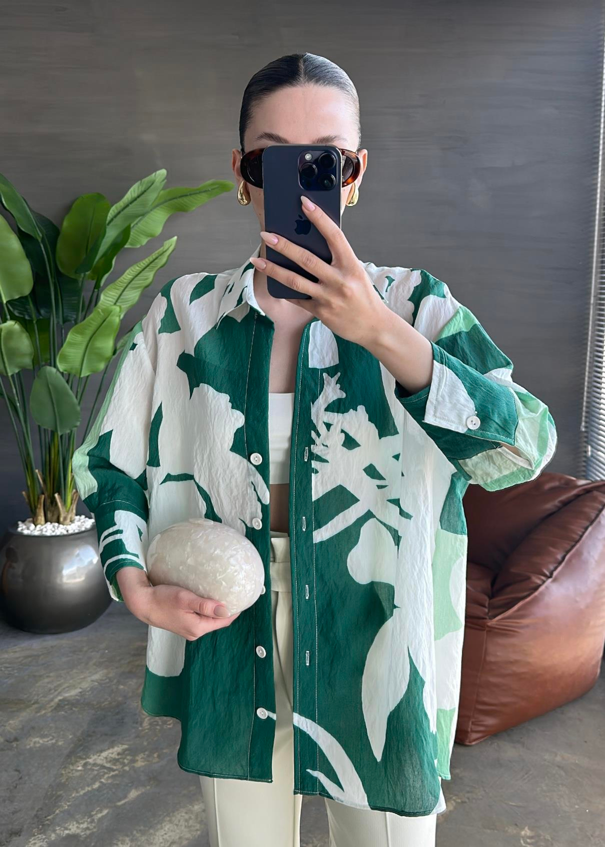 Yeşil Çiçekli ZR Gömlek BEYAZ